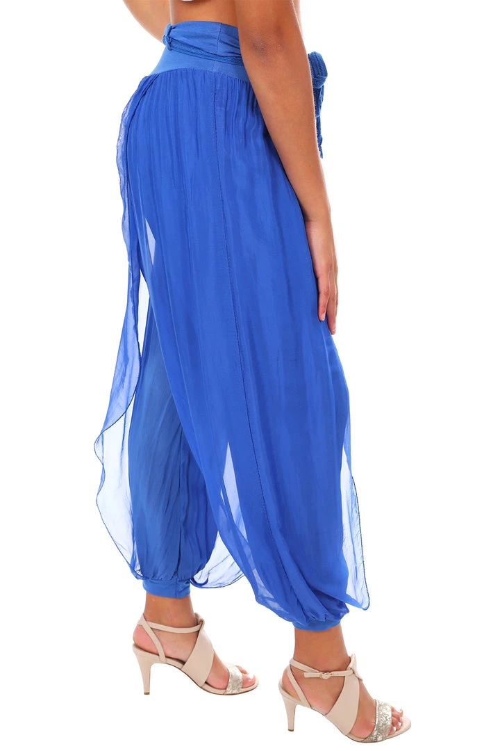 Dream of Jeanie this season and indulge in these amazing silk pants by Jenny Jazz! Their thick, jersey waistband optimises comfort and style making easy work of making beautiful memories. The loose cut flowing pants are designed to infuse your wardrobe with pure wonder! These are your biggest, best kept secret this season! Also available in other colours.