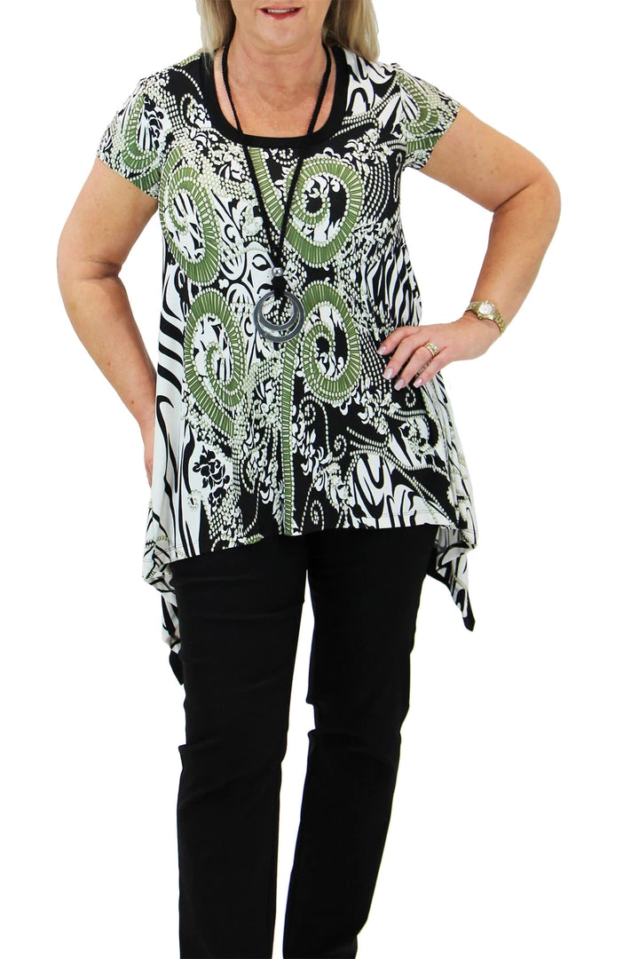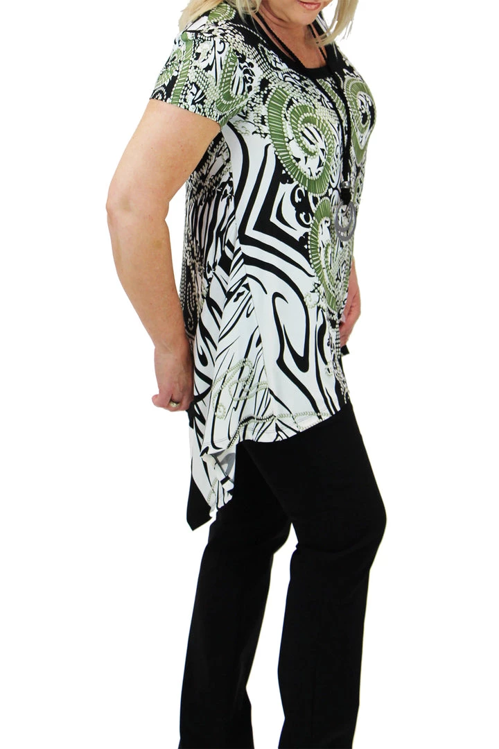 Cap sleeve, round neck, tunic top by Jersey Girl. Soft flowing A line cut,