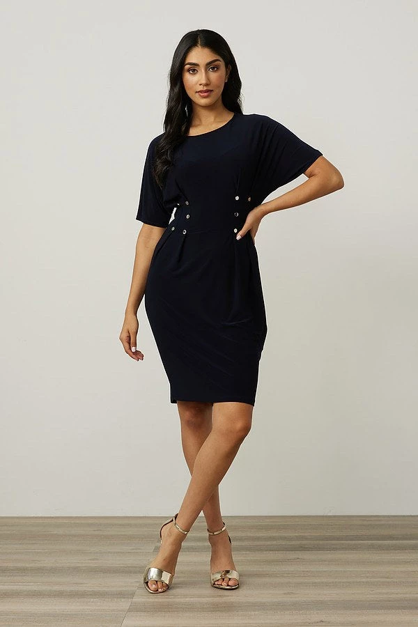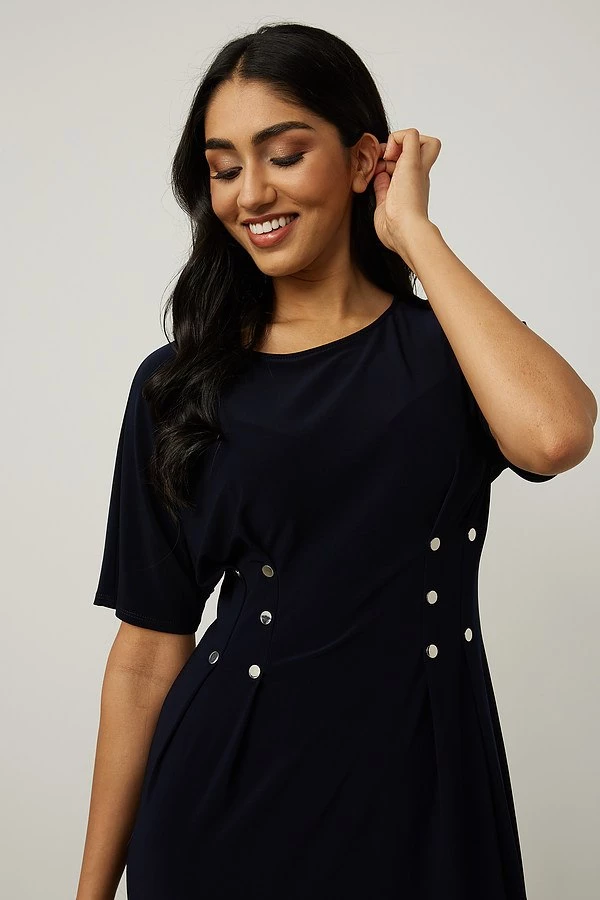 This stunning glamorous dress by Joseph Ribkoff is undeniably devine!! This design serves class and business, the detailed buttons down the waistline is a perfect touch to this dress.