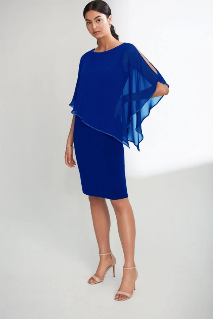 The Stunning Joanna dress is a style to flatter every figure, The Joanna dress is a timeless feminine design with a soft chiffon cape, diamante edging and a Sleek pencil line shirt this dress will turn heads every time you walk in to an event.Â