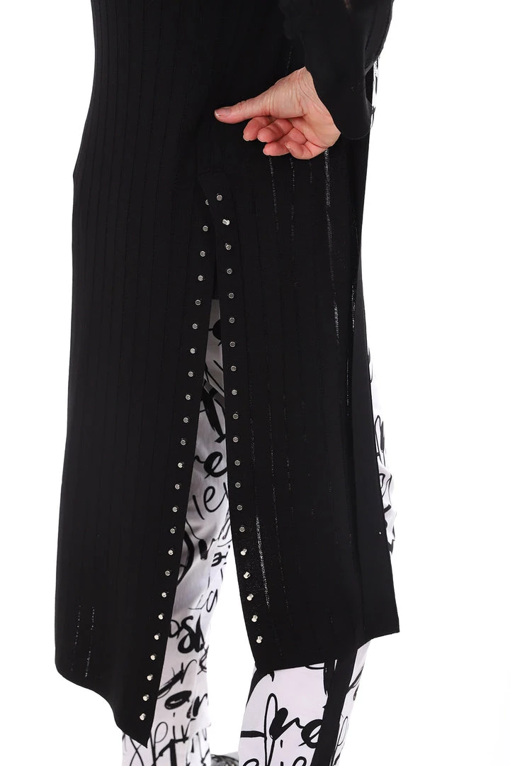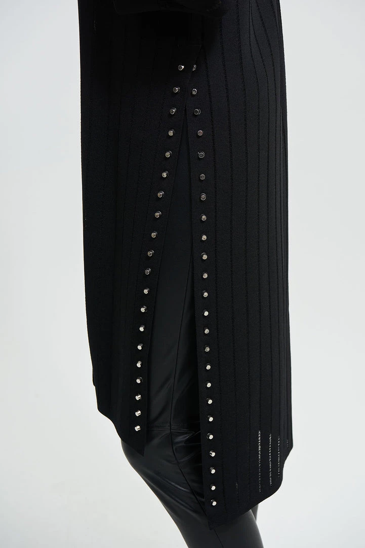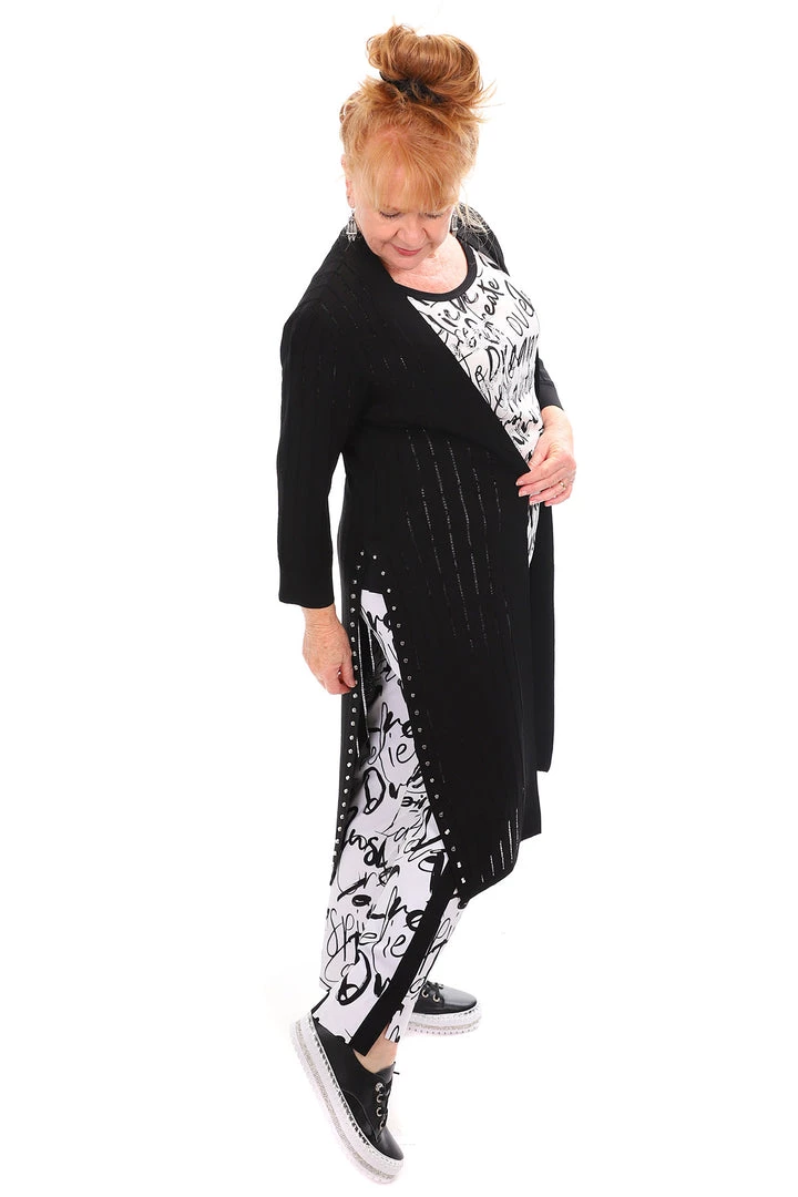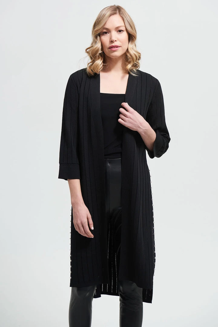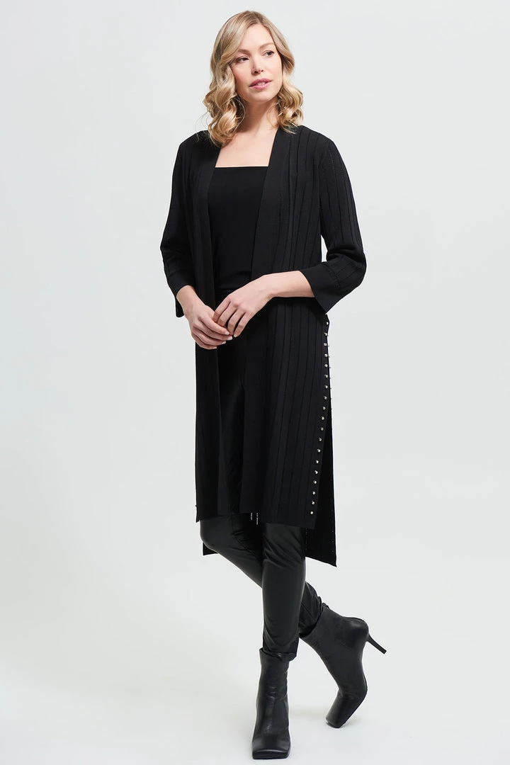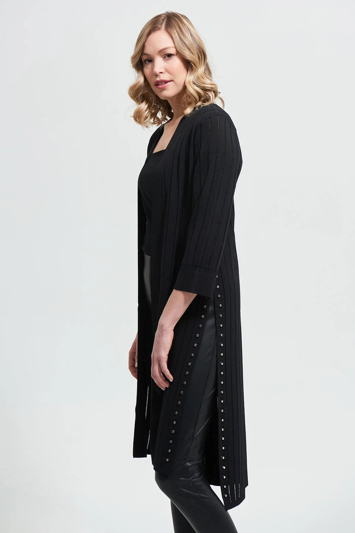 Joseph Ribkoff has done it again… This Longline Stud Cardigan is that simple statement piece that will have everyone saying wow! With long side splits & stud detail down each side, you can’t say no!Â