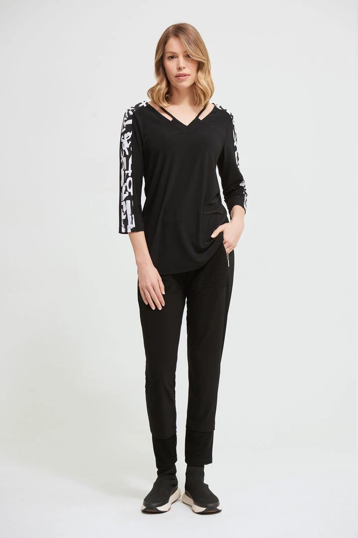 This top really shows off the unique designs of Joseph Ribkoff, it is a casual fitting top with stunning features, you can’t go wrong with this look!Â