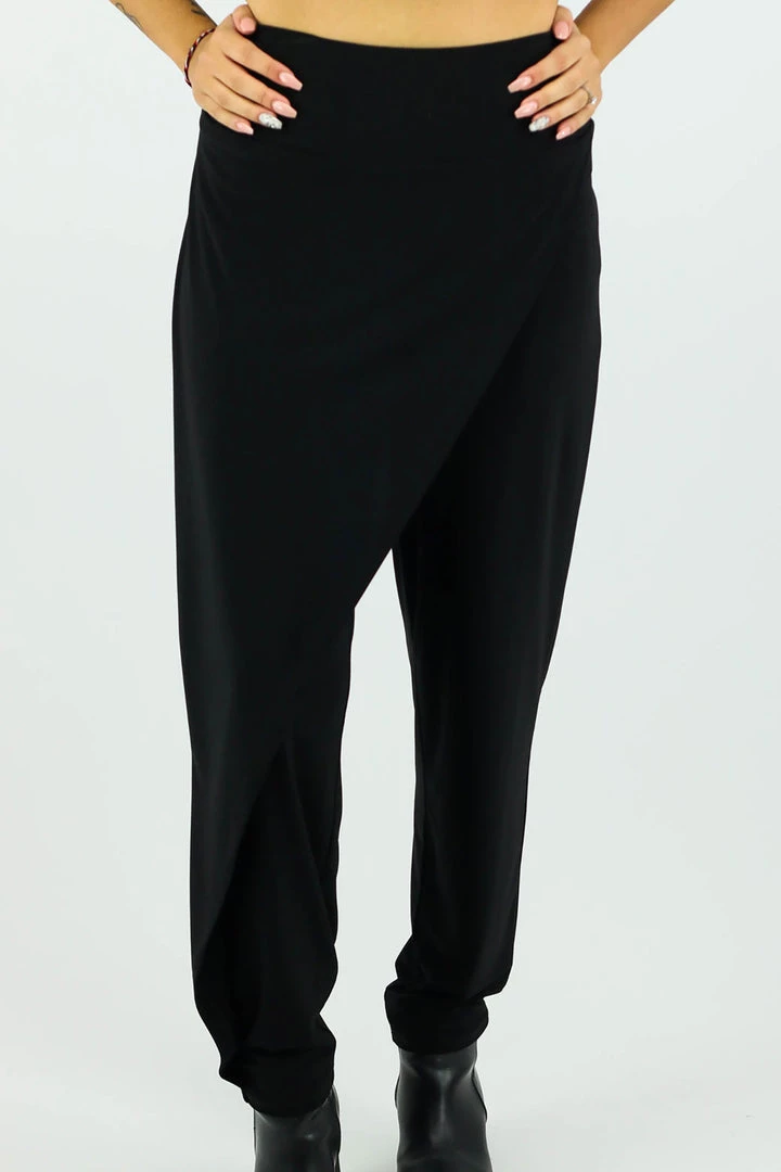 Simplicity never dates…..these sleek black pants by Joseph Ribkoff exceed quality and comfort whilst remaining multi-seasonal and endlessly versatile. Their asymmetric hemline across the front makes them stand-alone and ideal for every body shape!