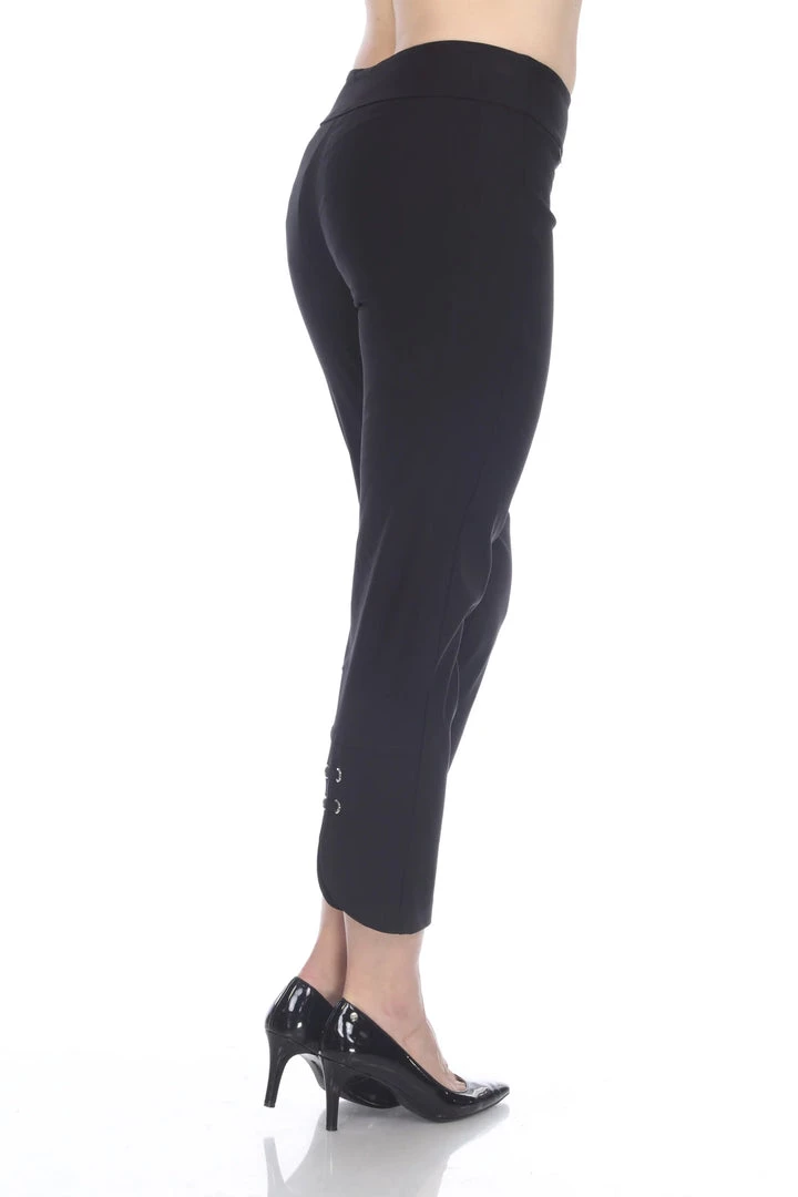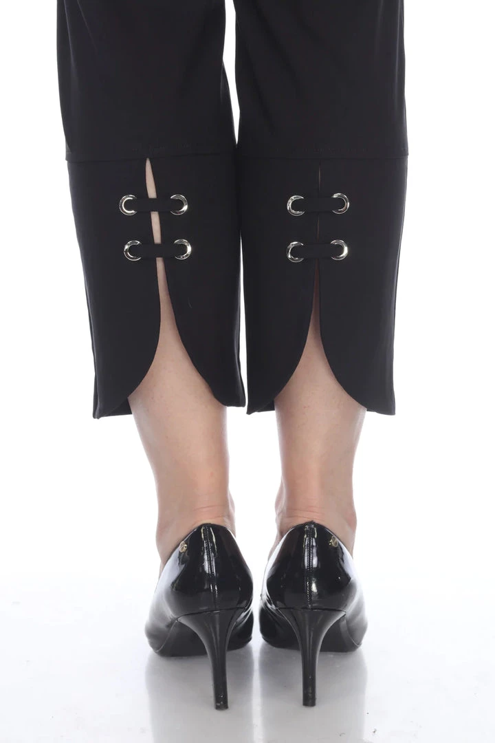 Joseph Ribkoff has designed these pants with an extra-wide waistband, are seven-eighths in length to create simplicity with no pockets, no zippers and feature studs down the legs
