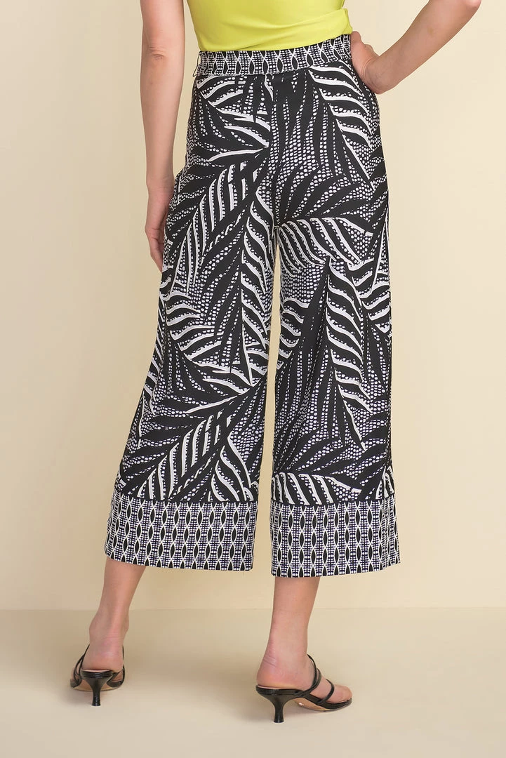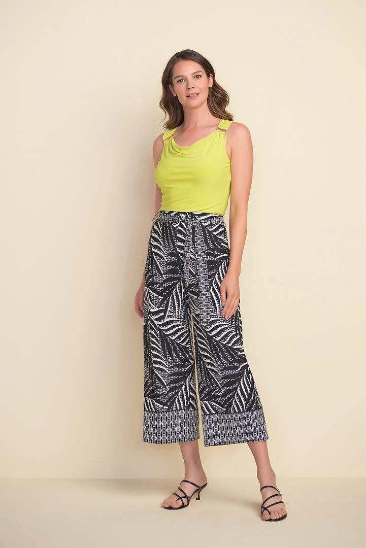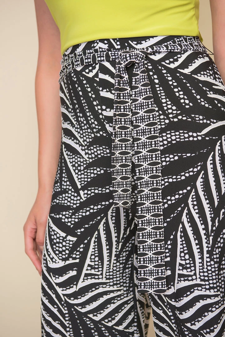If you haven’t yet discovered the joys of designer Joseph Ribkoff’s styles then these pants may be the start of a new obsession for you! These pull on pants with a self belt feature a soft elastic waistband and a three dimensional print. The wide legs make them cool and comfortable to wear and the soft fabric is great for travelling as it doesn’t crease or wrinkle. Team these pants with a black or white top for a great monochrome look. Add a heel and you are set for a night out or opt for a simple black or white slide and a contrasting colour top for a simple yet stylish look.Â