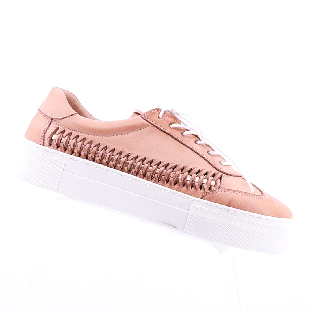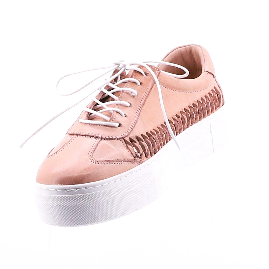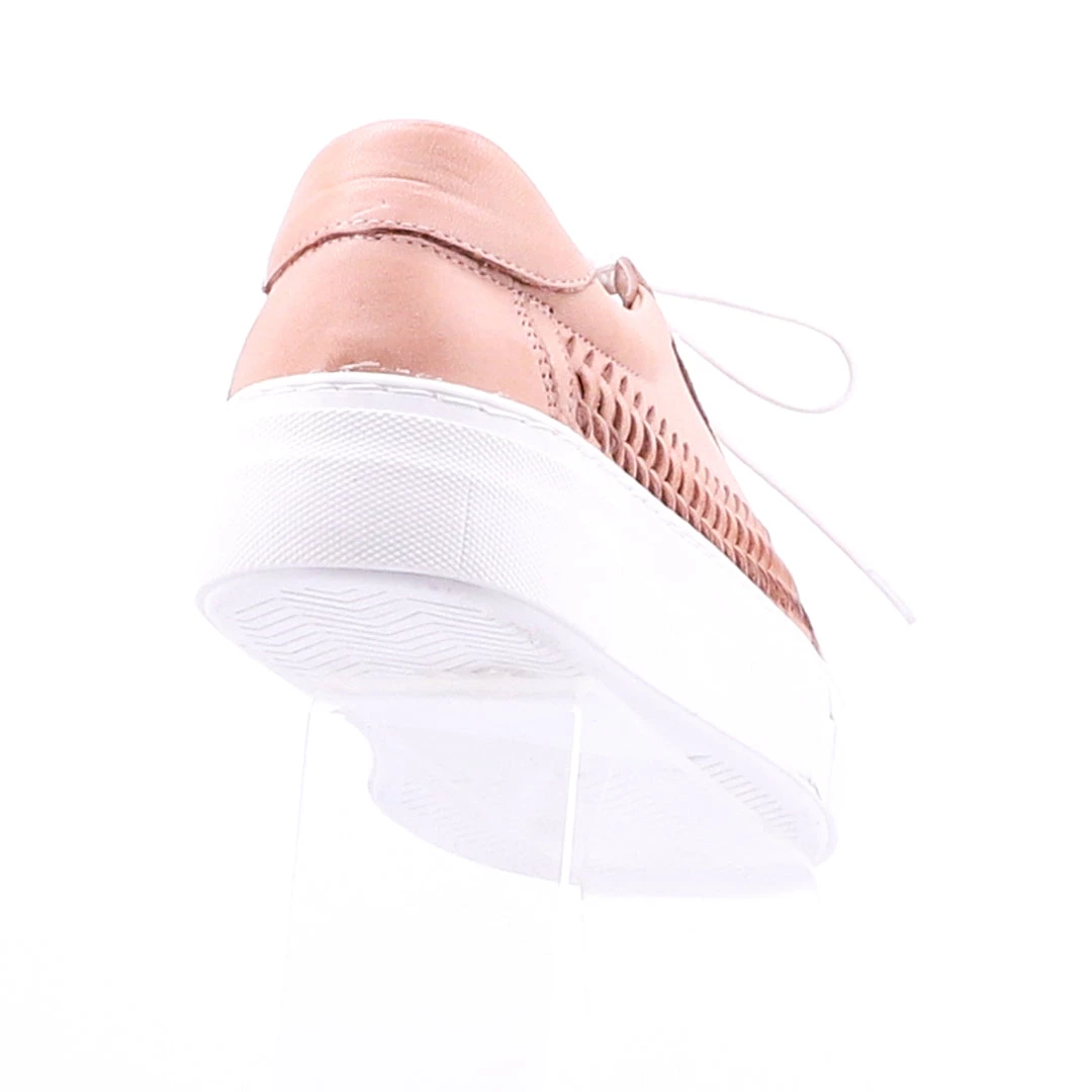 Whether its a hop, skip or a jump the Whotz sneaker in blush rose gold is here to help you do it in style! These lace up sneakers have a thick comfort sole designed to make every movement a dream! The braided leather detail in the side makes these pink sneakers stand out, adding a touch of Pizazz to your life!