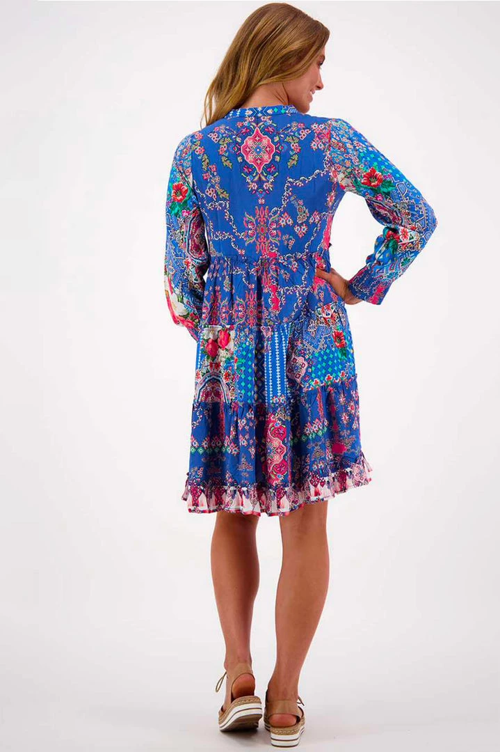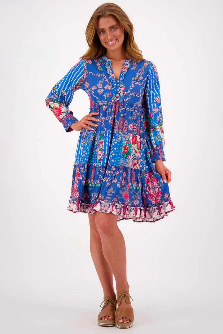 Feel the breeze in this 100% cotton dress feel amazing in this glamorous waterfall flower print tiered dress . This dress ticks all the boxes for that essential staple dress this season, The detailed frilled hem and neck line shouts out its fem touch. Pair up with your favourite Boots & Denim jacket for a good night out.