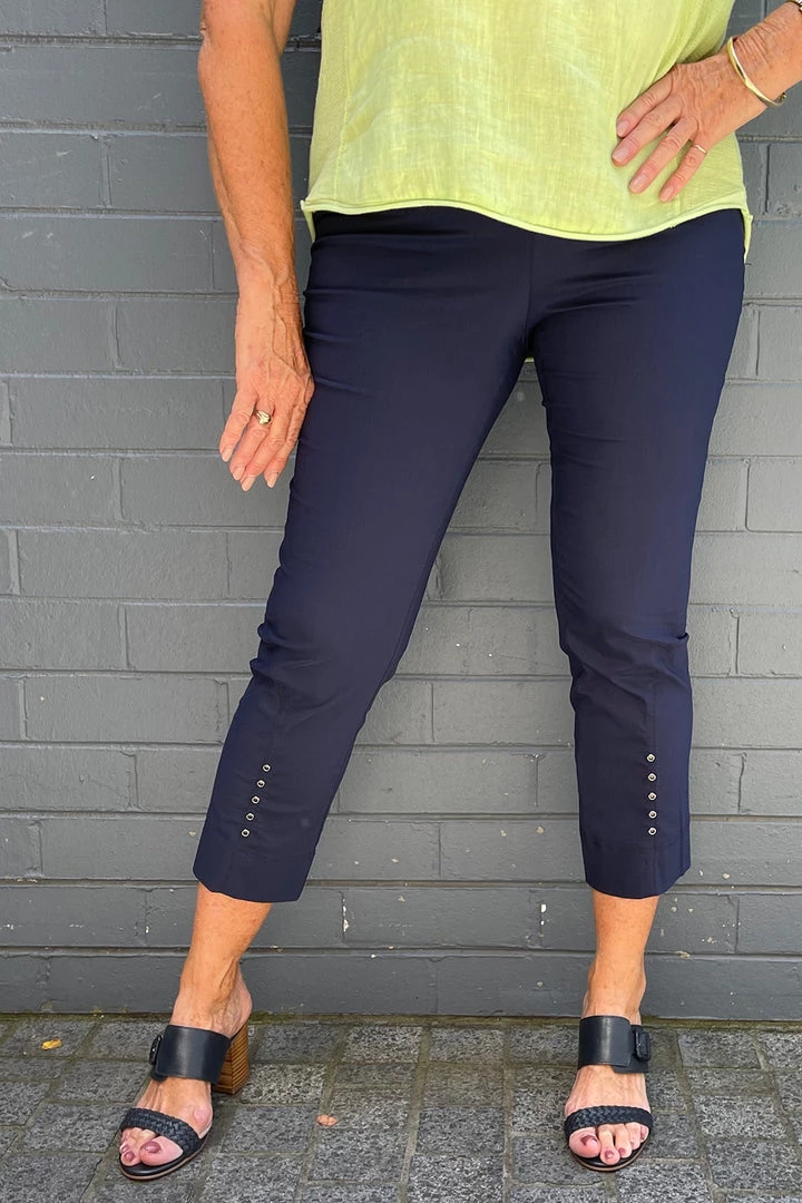 Ease into everyday with these light weight, elastic waist pull on pants. Perfect for days at home or dress up for any outing. They have a straight leg with 5 eyelet detail at the bottom front. See available colours search MAG11