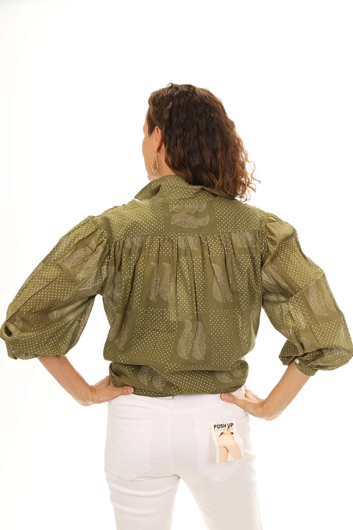 Channel your inner Goddess when you wear the beautiful Lou shirt in olive. The Lou shirt will have you looking and feeling like a goddess.