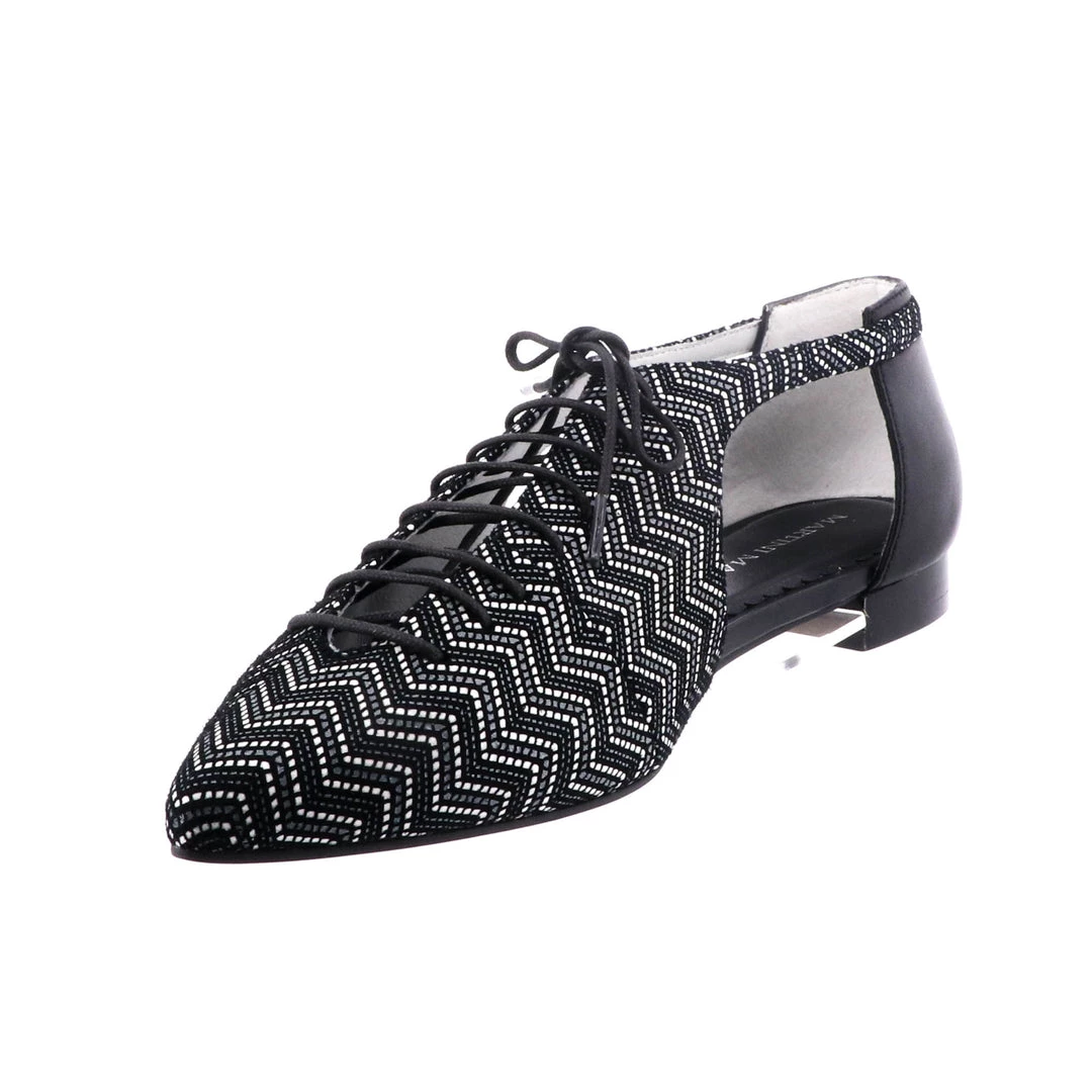 It’s SHOE good to be true! These amazing black leather shoes by Martini Marco radiate vintage charm with their zig zag inspired design and pointed toe shape. The cut outs on the side and under the laces add attitude, individuality and Pizazz to your wardrobe all year long. Wear these vintage inspired shoes with your favourite dresses, skirts and pants! Made from the finest quality leather you’ll never bid these goodbye!