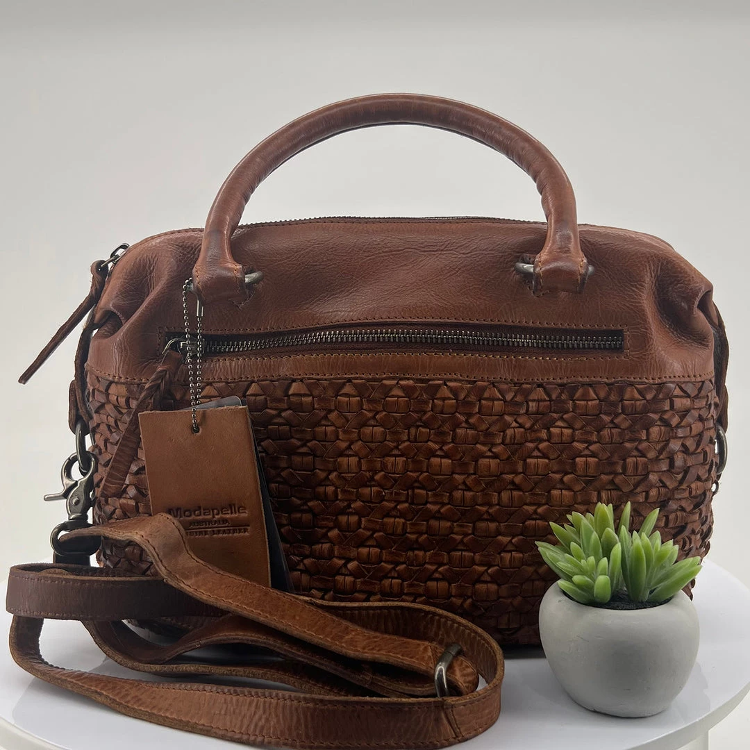 Complete your wardrobe and accessory aesthetic with this Chestnut vintage leather handbag by Modaelle. This detailed leather handbag will set your outfit off like wildfire! With internal and external storage, woven detail and adjustable straps top zip opening, lots of space in this beauty,  you’ll take this with you wherever you travel!