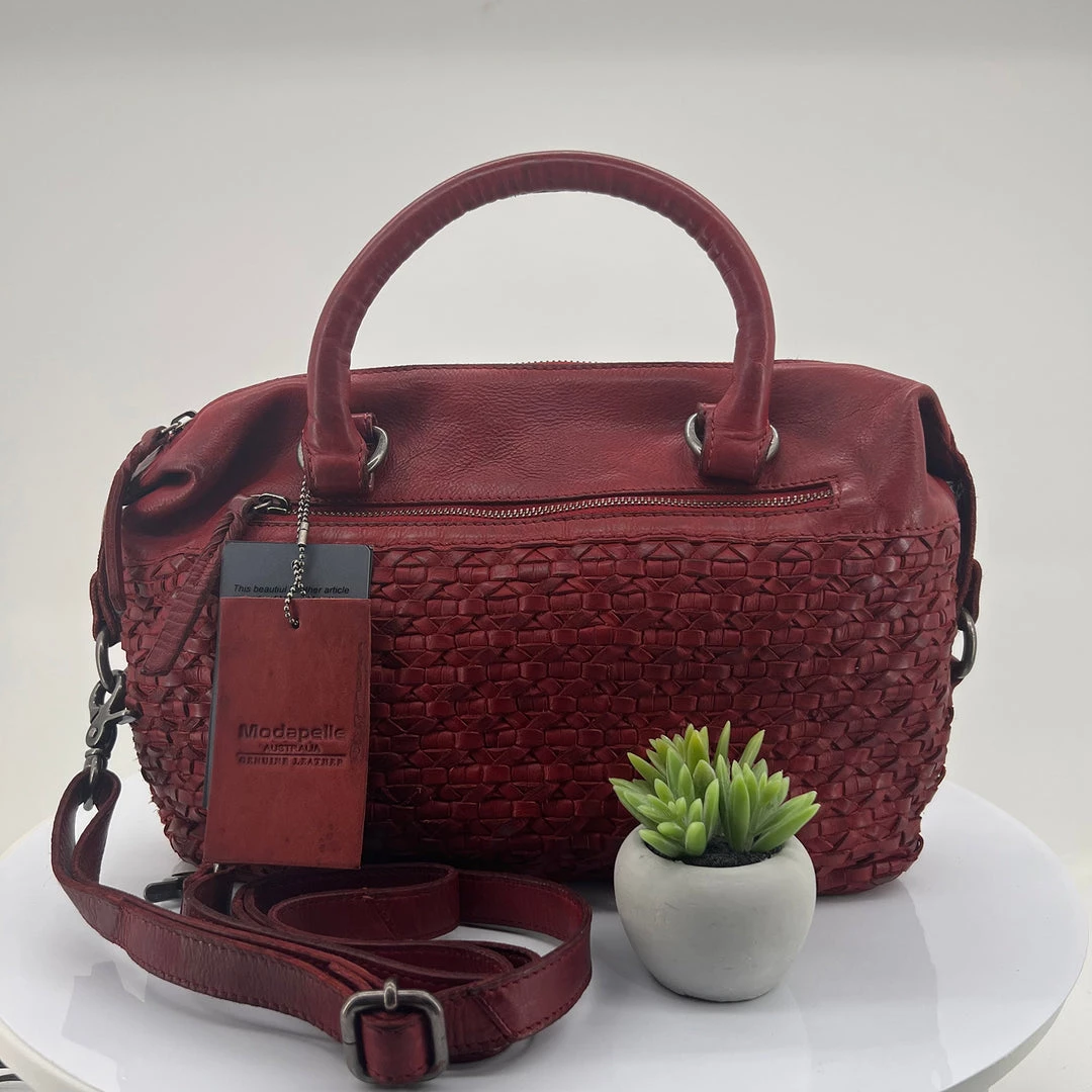 Complete your wardrobe and accessory aesthetic with this Red vintage leather handbag by Modaelle. This detailed leather handbag will set your outfit off like wildfire! With internal and external storage, woven detail and adjustable straps top zip opening, lots of space in this beauty,  you’ll take this with you wherever you travel!