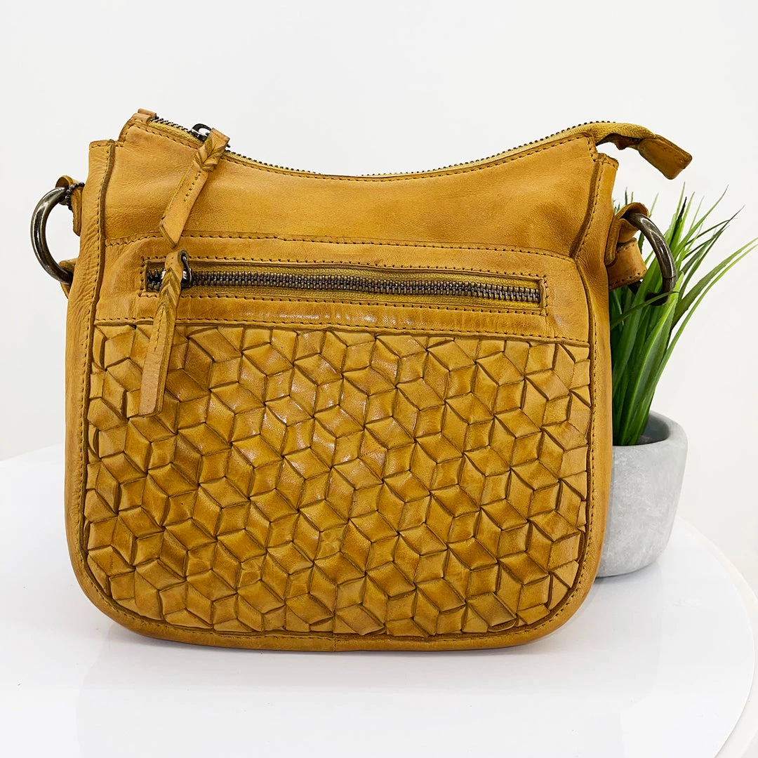 The beautifully made leather front zip bag in yellow it just divine, it can be worn across your body or over your shoulder with plenty of room for all you needs.Â