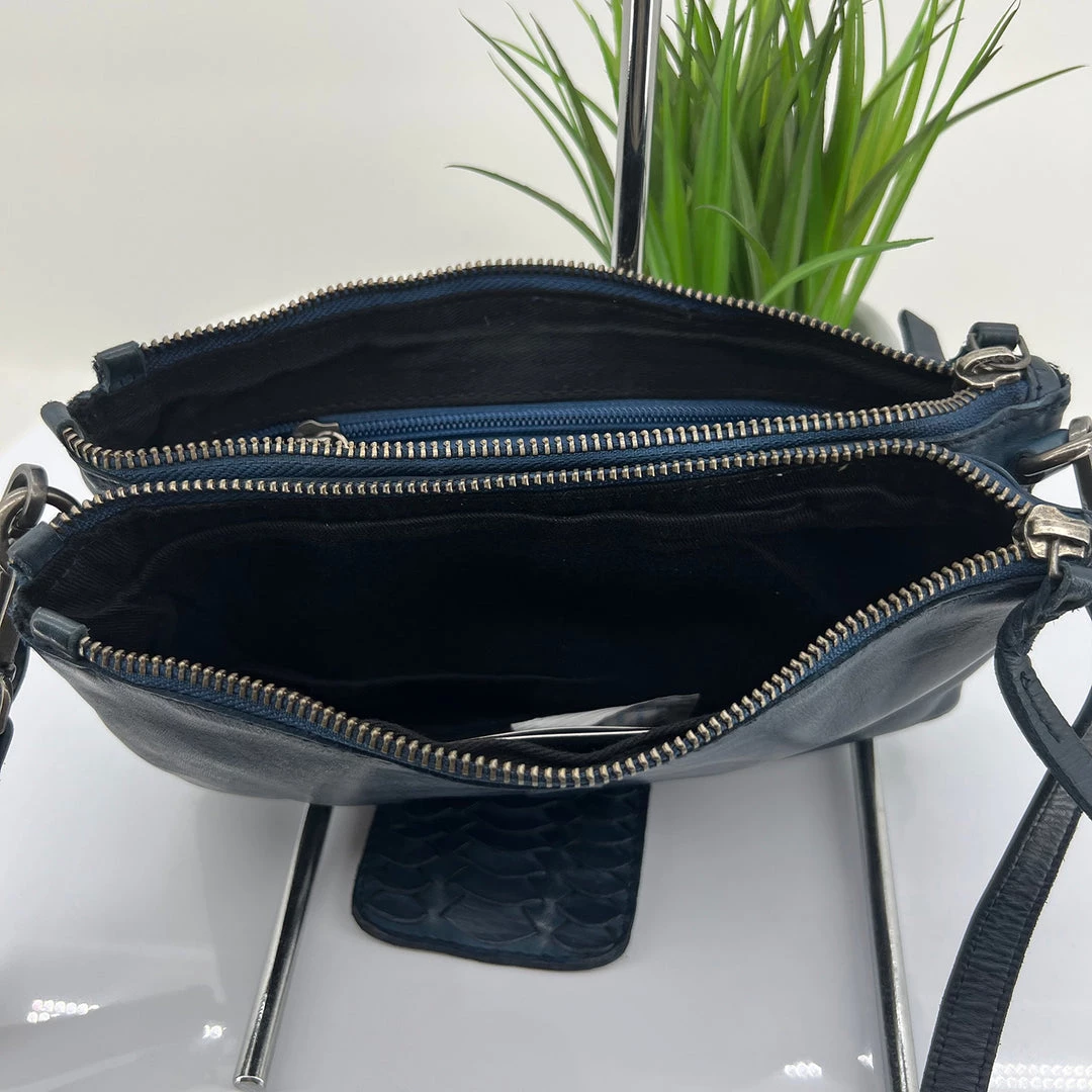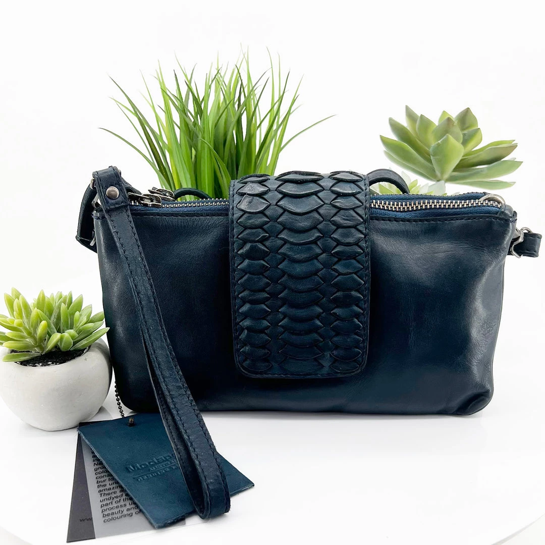 The Multi compartment bag is a great versatile bag, with 5 international Card slots, adjustable shoulder strap, a removable leather wristlet & a scallop feature detail front flap.Â