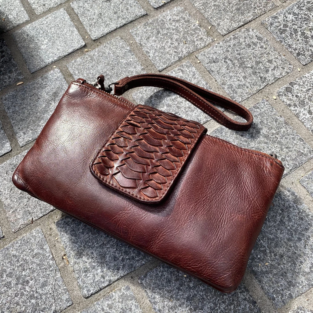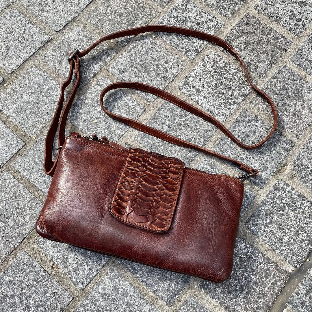 The Multi compartment bag is a great versatile bag, with 5 international Card slots, adjustable shoulder strap, a removable leather wristlet & a scallop feature detail front flap.