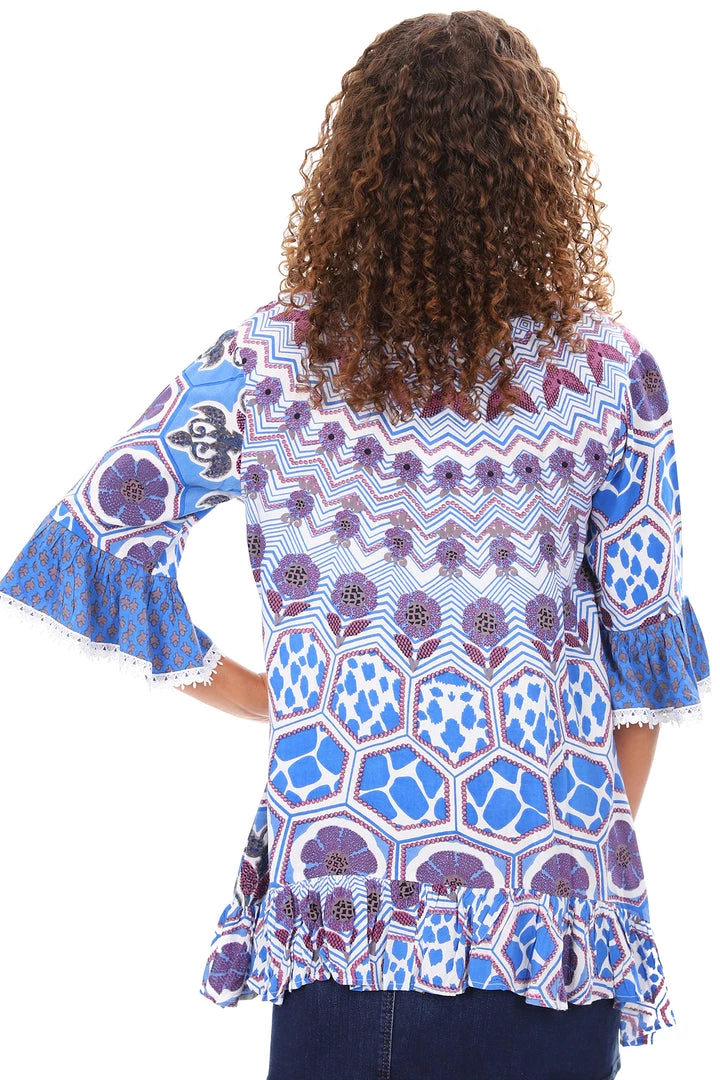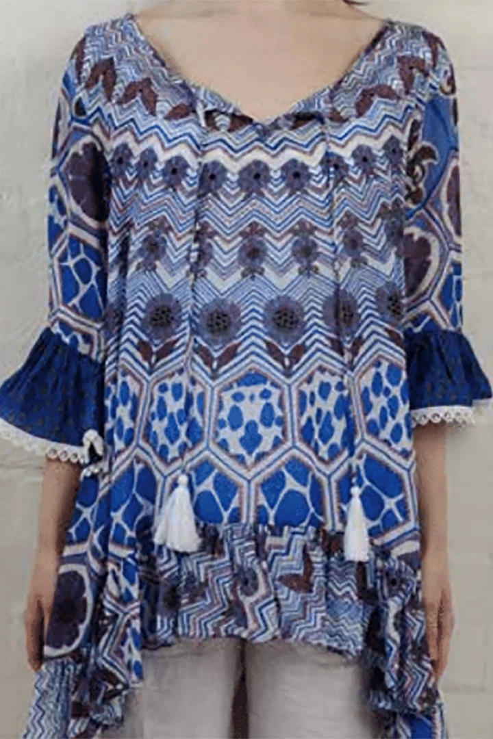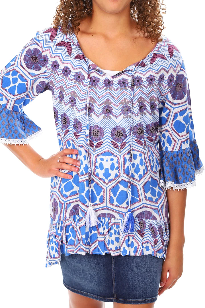 The Naudic Hacienda Tunic is a perfect long line top for ladies who prefer a sleeve. It features a tassel tie neck and lace trim on the cuffs of the three quarter length sleeves. The Pizazz styling tip for this tunic is to team the top with with some white shorts in warmer weather or your favourite jeans in winter which will see this top take you right through all seasons.