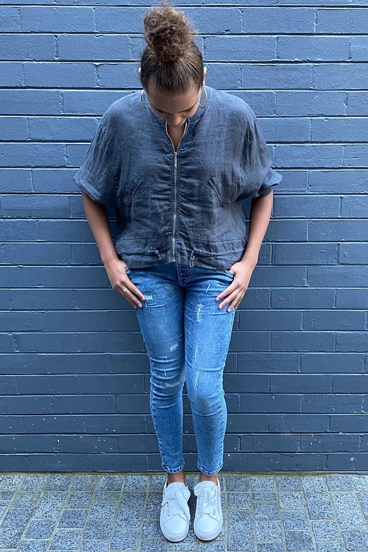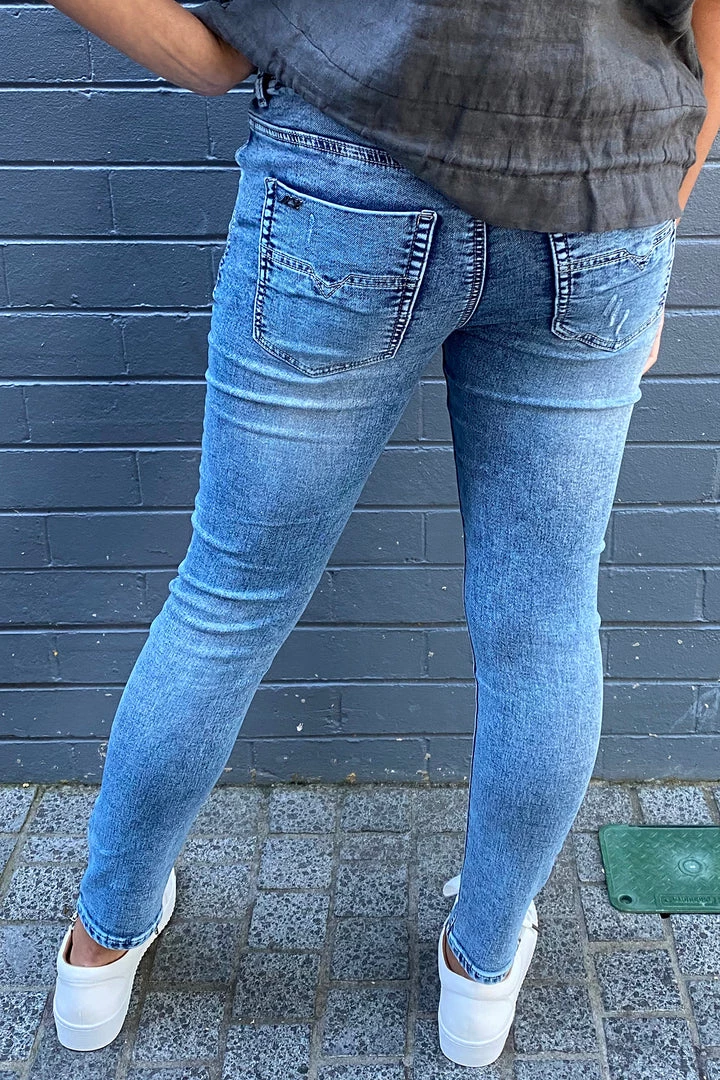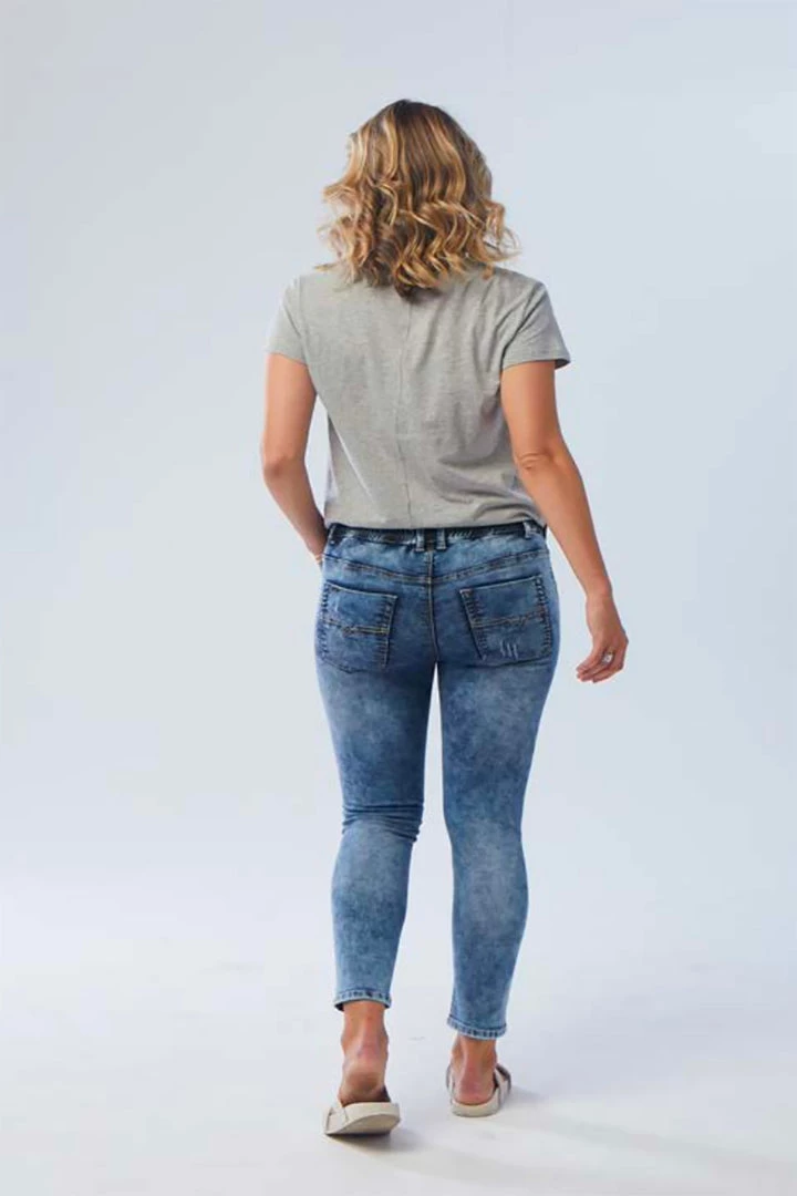 Blend attitude with every day life in the Dundee jeans by New London! Their acid washed look and distressed details give a touch of Pizazz to every outfit you throw together! The semi-fitted cut and drawstring waist have a uniquely sporty feel allowing you to move freely and with energy as you make unforgettable memories in your new favourite jeans!