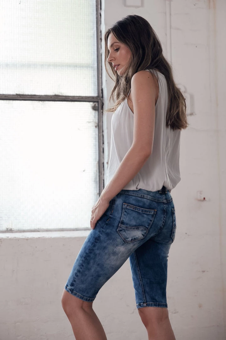 Looking for cool and comfortable shorts this summer? The Norton Denim Shorts in water by New London are perfect with their easy mid rise fit, stretch fabric, above knee finish and overall Pizazz.Â
