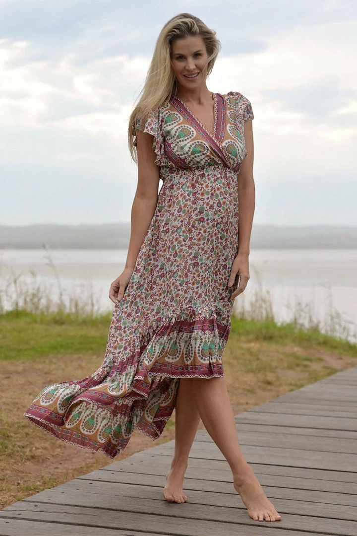 The Ombak brand offers style in spades. You won’t find anyone else wearing your dress on your day out when you choose this wonderful Ombak designer crossover bodice dress. These dresses are perfect for hour glass figures. They fit and flatter all your curves and the delightful high low frilled hemline adds a touch of classic class to this dress which is perfect for a day at work or a day by the beach.Â