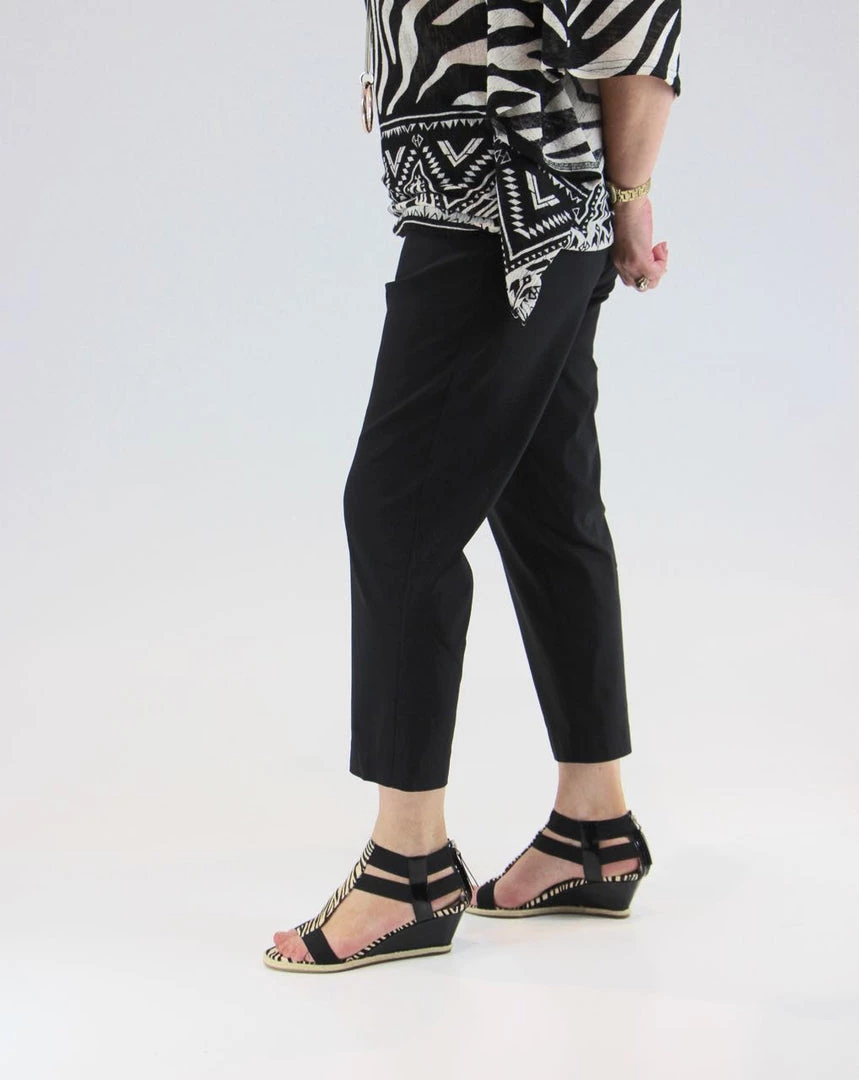 The 3/4 length of the Adora is perfect for summer and extends the leg by showing some skin. The narrow fit is streamlined and the elastic waist makes it so comfortable to wear. This pant look great worn under a tunic or as an alternative to leggings.
