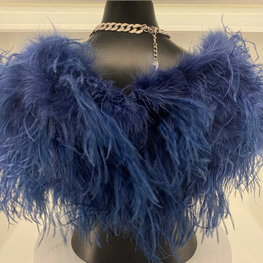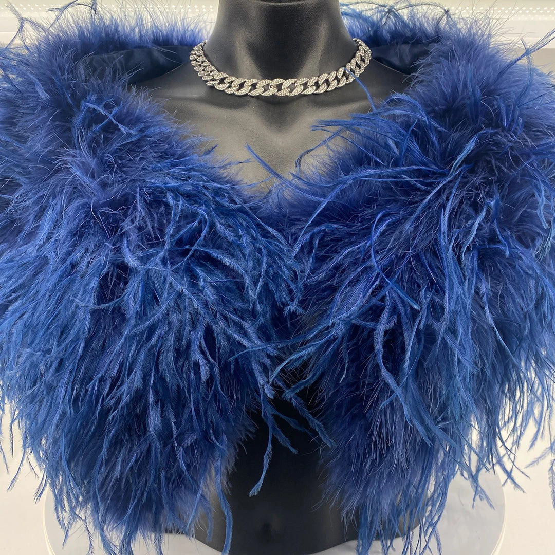 The stunning Ostrich Feather Shrug is perfect for all occasions with its classic style, this designer piece is comfortable to wear, wrap the shrug around your shoulders to take yourself to the next black tie, cocktail night or any function as you will turn heads for all the right reasons.