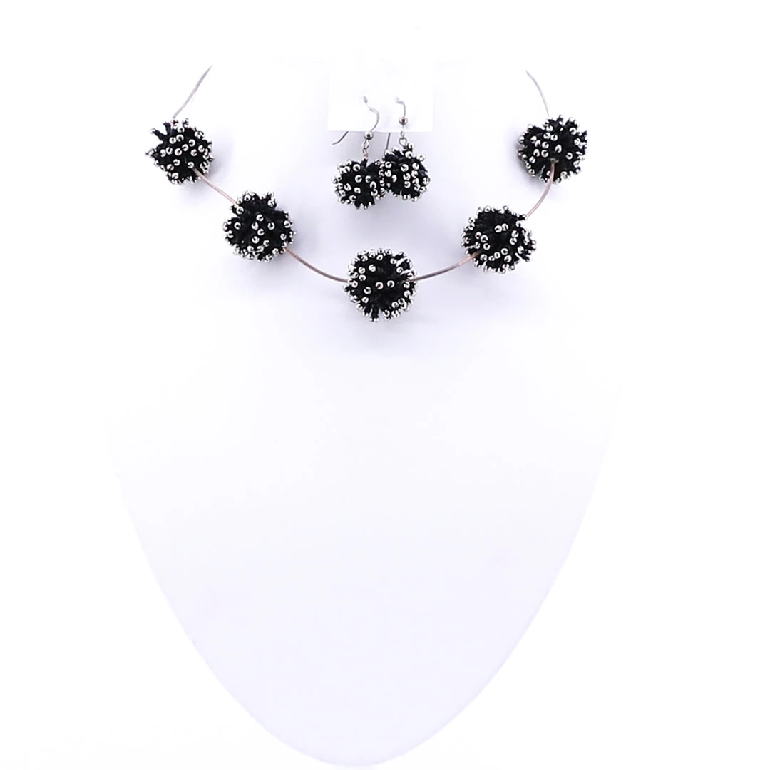 Pizazz Boutique Silver Pom Pom Earrings & Necklace