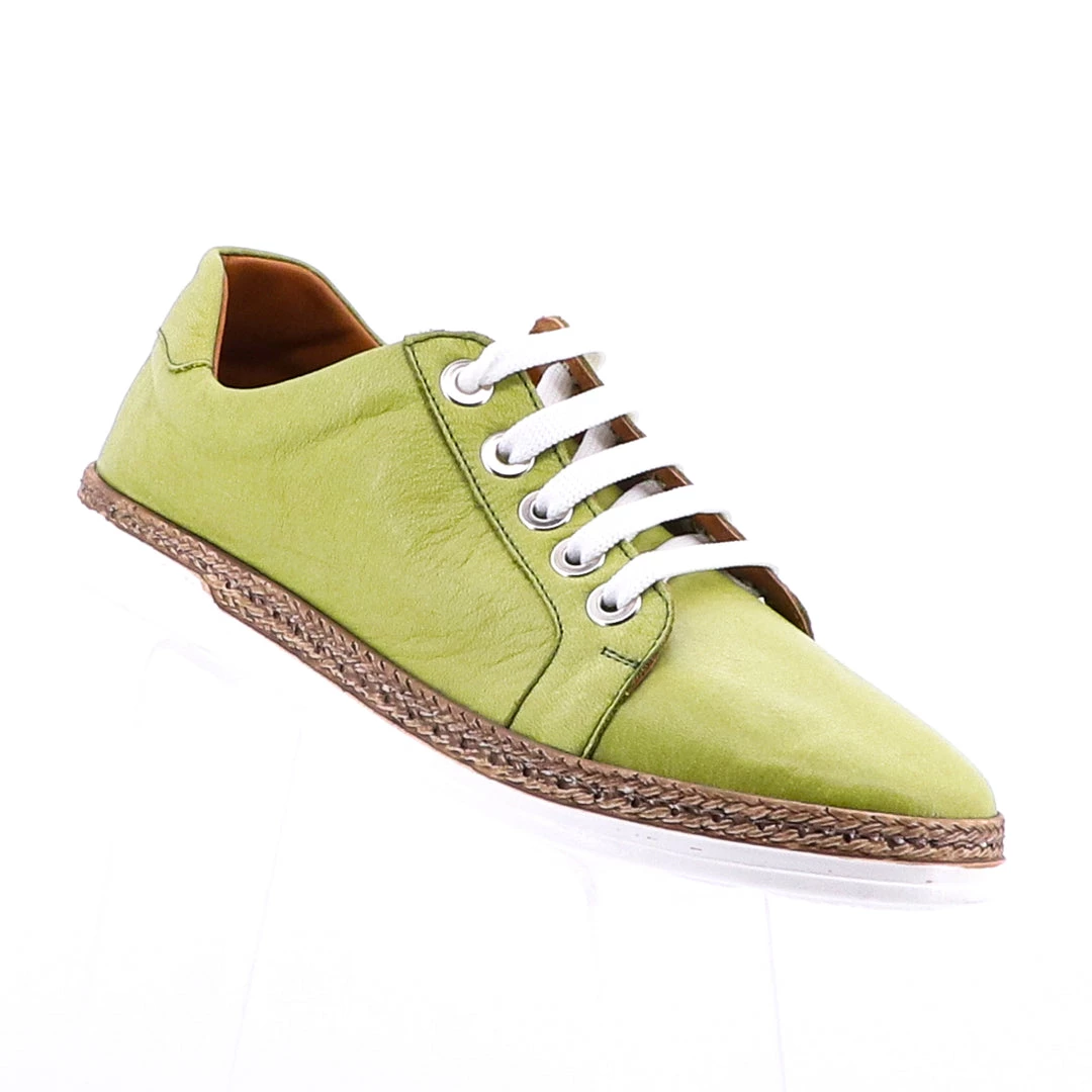 Designed to suit the lifestyle of every modern woman, the Tannery Leather Sneakers in Kiwi green by Rilassare offer comfort and practicality without compromising on style. The inspiring kiwi leather is modern and breathable, perfect for long days. With a natural espadrille inspired trim the green leather and brown trim create a trendy look, popping the white laces and sole. Perfect for long days of making beautiful memories!