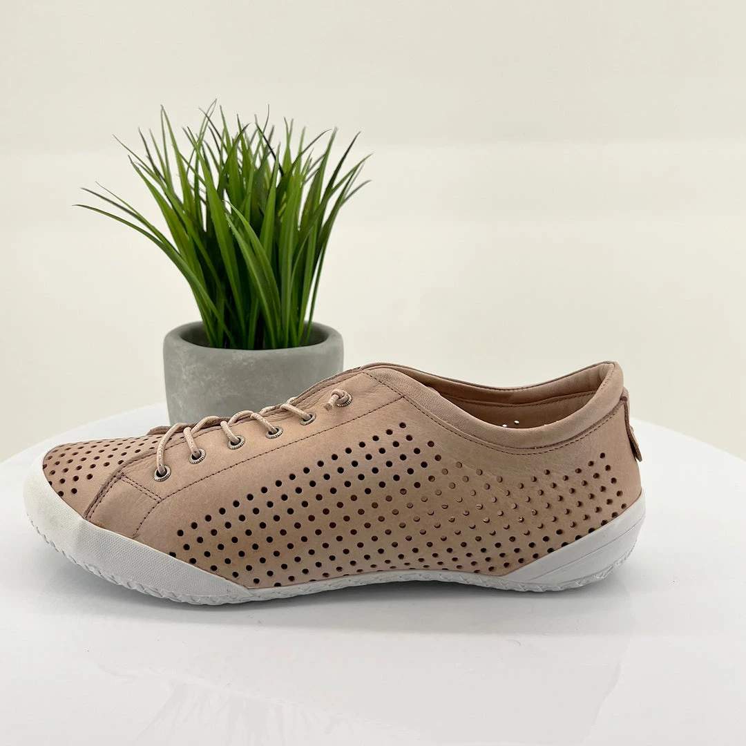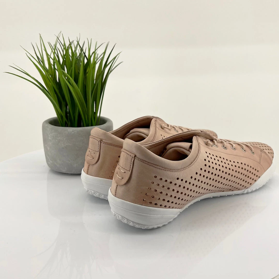 The feeling of comfort and ease that comes with slipping into a pair of Tyhoe Sneakers by Rilassare is unparalleled! These metallic silver leather shoes are flexible, light weight, breathable and supported by a comfort footbed. With hole punch detailing and white laces to match the white sole these silver Tyhoe sneakers are a refreshed touch of Pizazz to add to all your outfits!