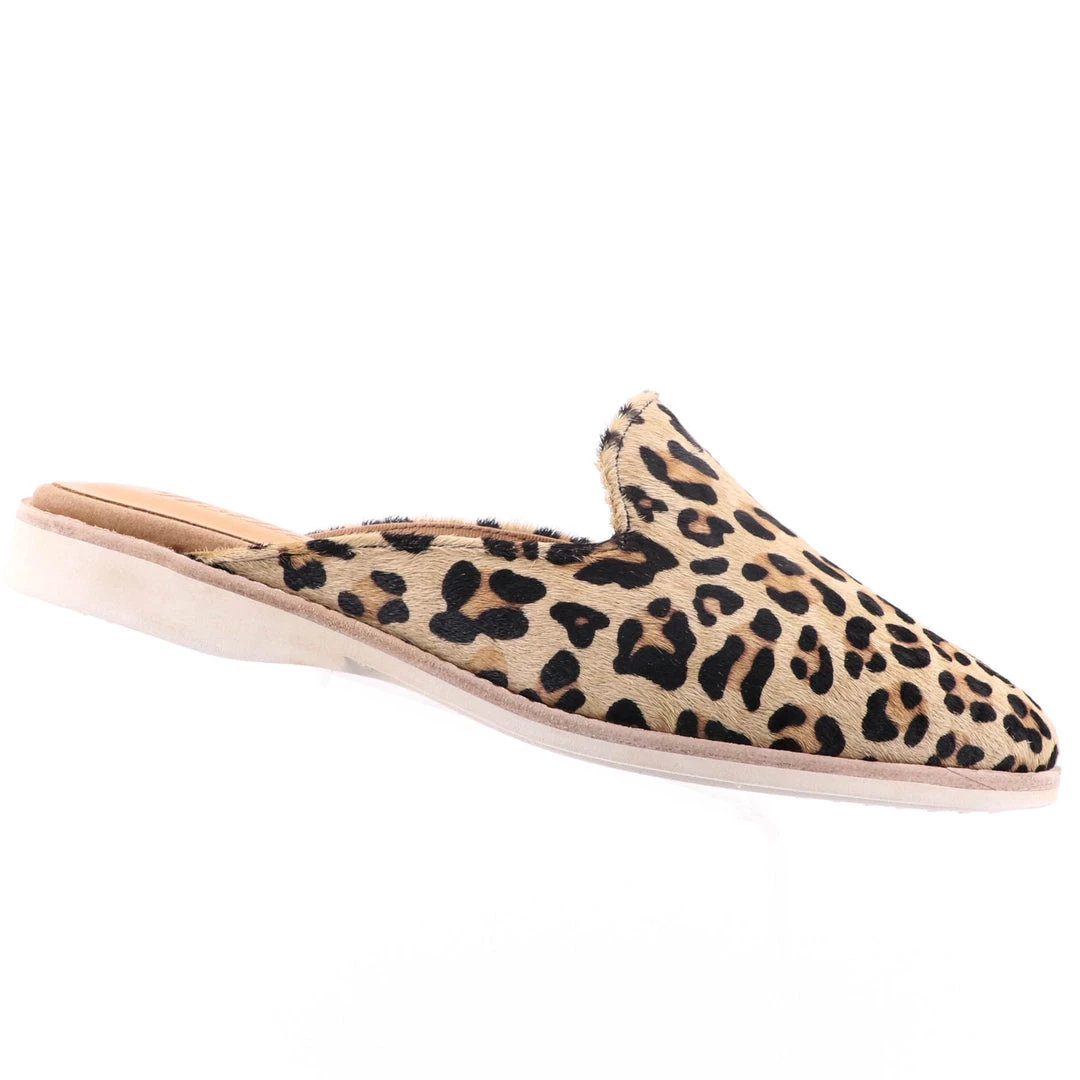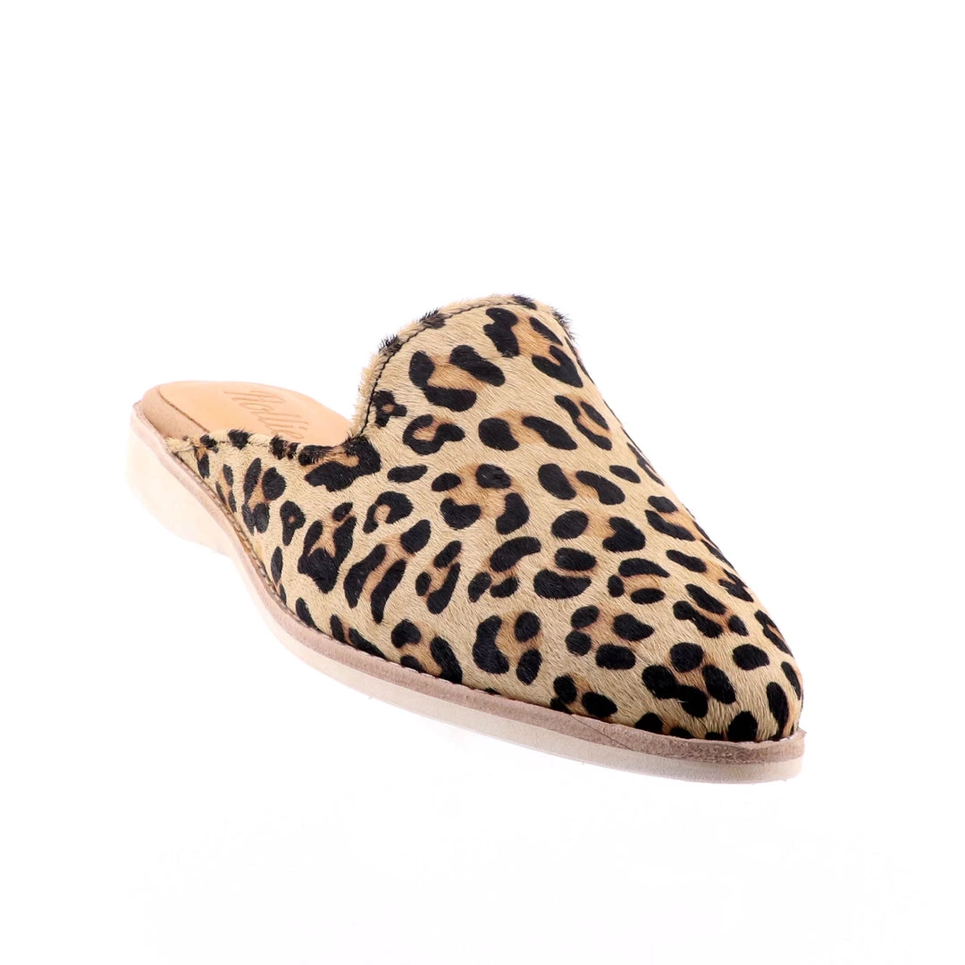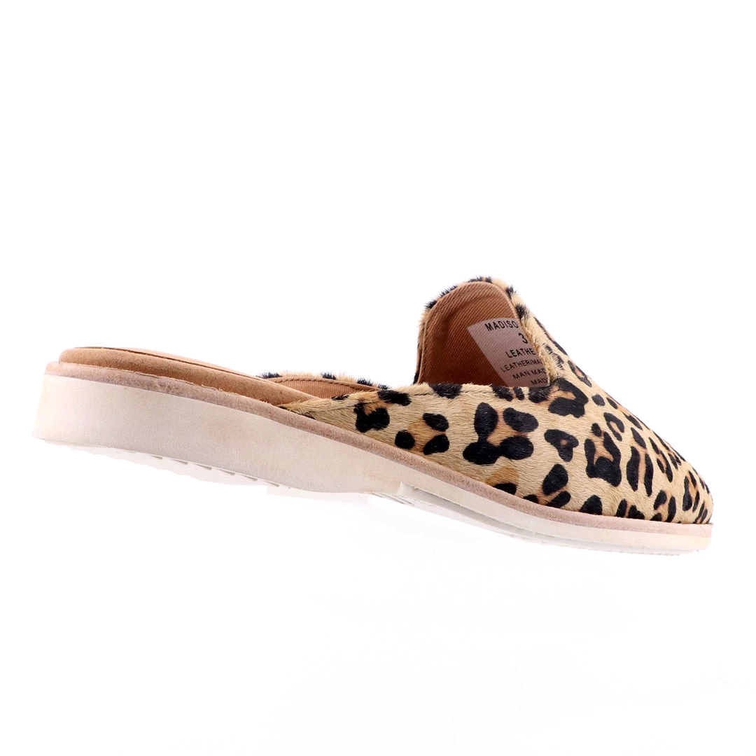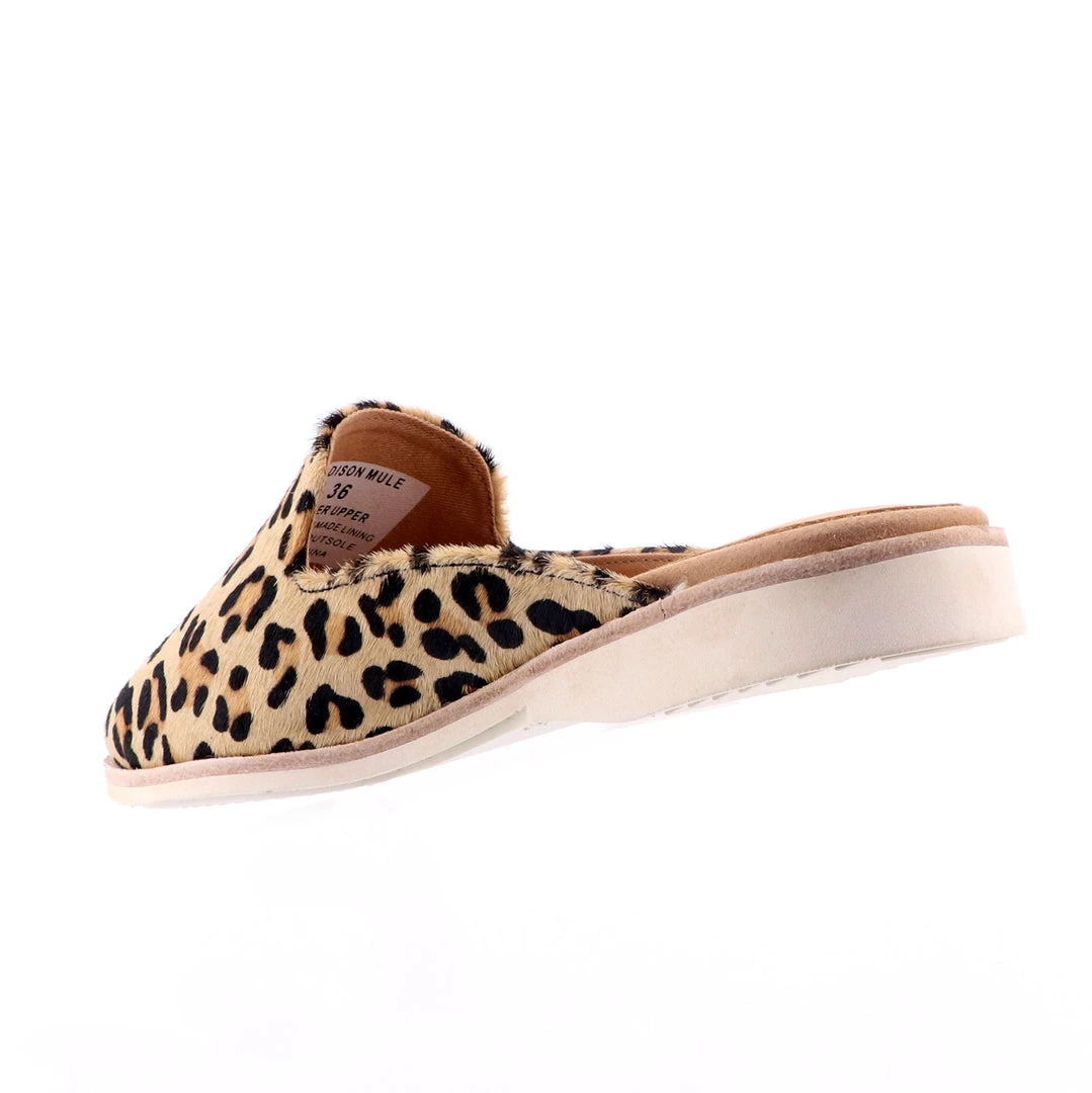 Slide into the wild side of life with the Madison Mule slide in a camel leopard print pony hair. These pointy toe flats will dress up any casual outfit without the hassle of a heel. Sleek and comfort is everything you need.