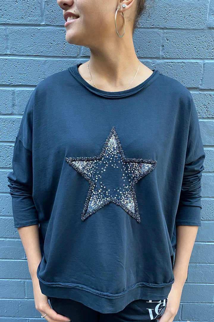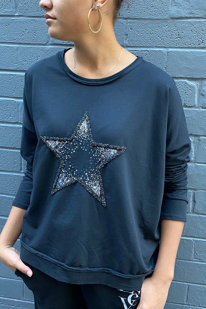 Your star will shine brightly when you wear this great Tee with star detailing. The Starburst Top by Roase JoJo is made in 100% cotton which means you will have the comfort of wearing natural fibres when you wear this stylish tee. Team the black star motif tee with your favourite jogger pants for a great casual look.
