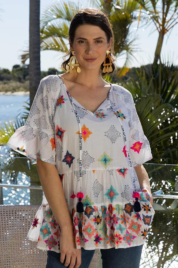 Rubyyaya is the go to designer brand for soft summery tops. The Bentuta Top is a classic that you will absolutely love to have in your wardrobe. The elegant wide sleeves offer cool protection from the hot summer sun while the loose fit with self belt allow you to create multiple looks. Made in 100% viscose the Bentuta Top is easy care simply hand wash in cold water and hang.