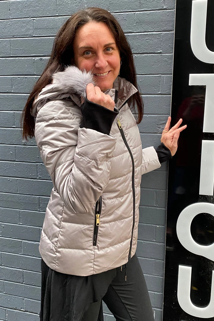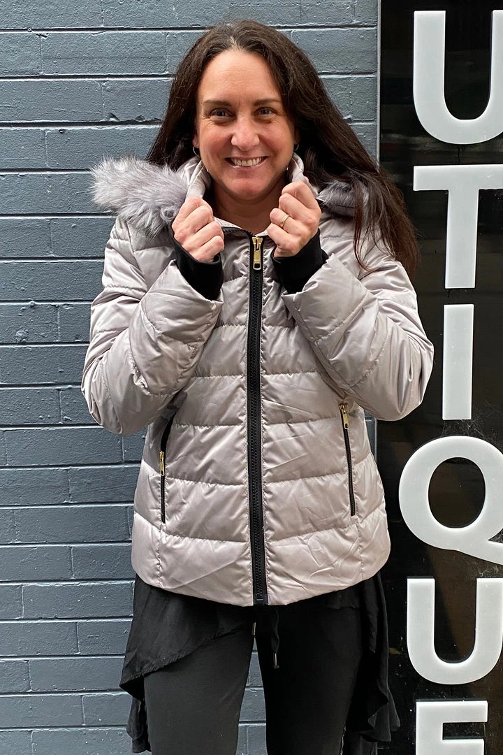 Nothing keeps you warmer than down, it’s gold standard and this down and feather filled puffer jacket is the perfect answer to staying warm this winter. The metallic finish is on trend and the faux fur trim adds an element of style! The team at Pizazz are chosing this jacket a s a real winner for keeping warm this winter.Â