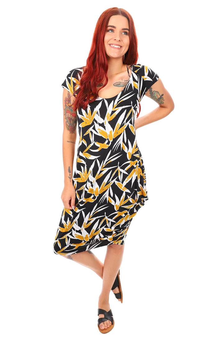 Yes its true, the Layla Sleeveless Dress in Bamboo is officially the perfect miracle dress! Coming to your wardrobe this Summer we present to you the most flattering silhouette; a scoop neckline, short sleeve, side drape with a slouch fit! The striking abstract print will turn heads as you strut your stuff with confidence, because a little party never killed nobody…