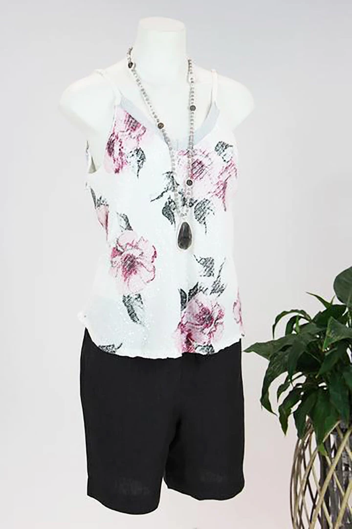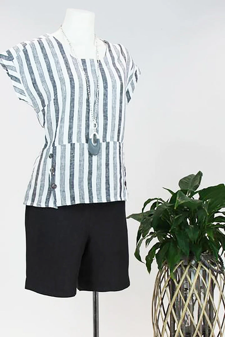 See Saw always do their basic essentials in pants, skirts and shorts, this year they have given us another option for the lady that likes their shorts a little shorter than their SW3663 short, which is to the knee. Â The Colour is Aniseed which is also pictured with the Linen Stripe Shell Top in Aniseed stripe.