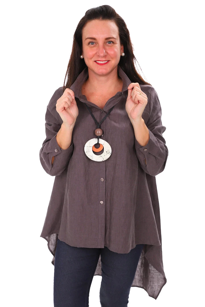 New Season Arrival with See Saw’s Linen Button Thru Hi Lo shirt. Â Beautiful addition to wear with your Linen Pants or Jeans.