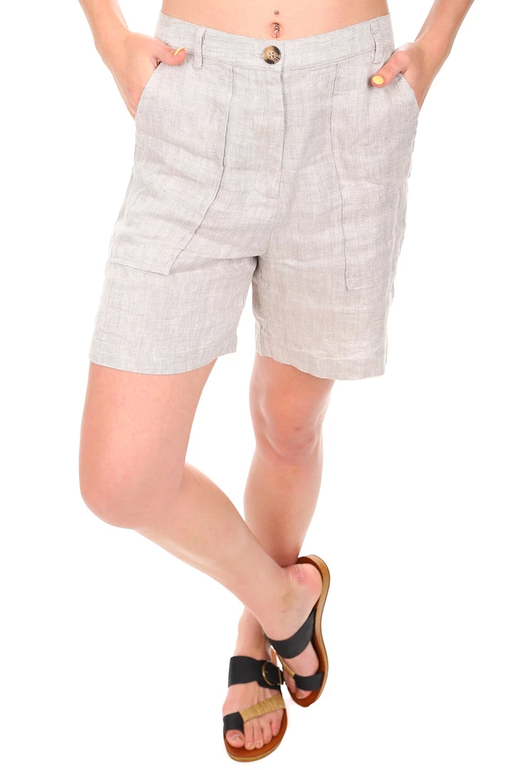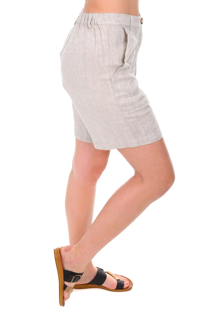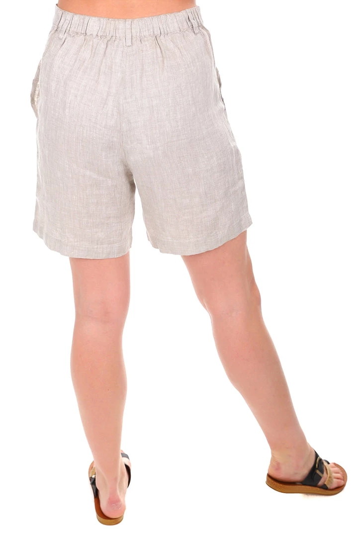 These sensational Linen Mid Shorts in Natural by See Saw are the adventurers dream! With a light and crisp finish these elastic waisted, button front shorts are designed to carry you from the garden to the beach and all around the world!