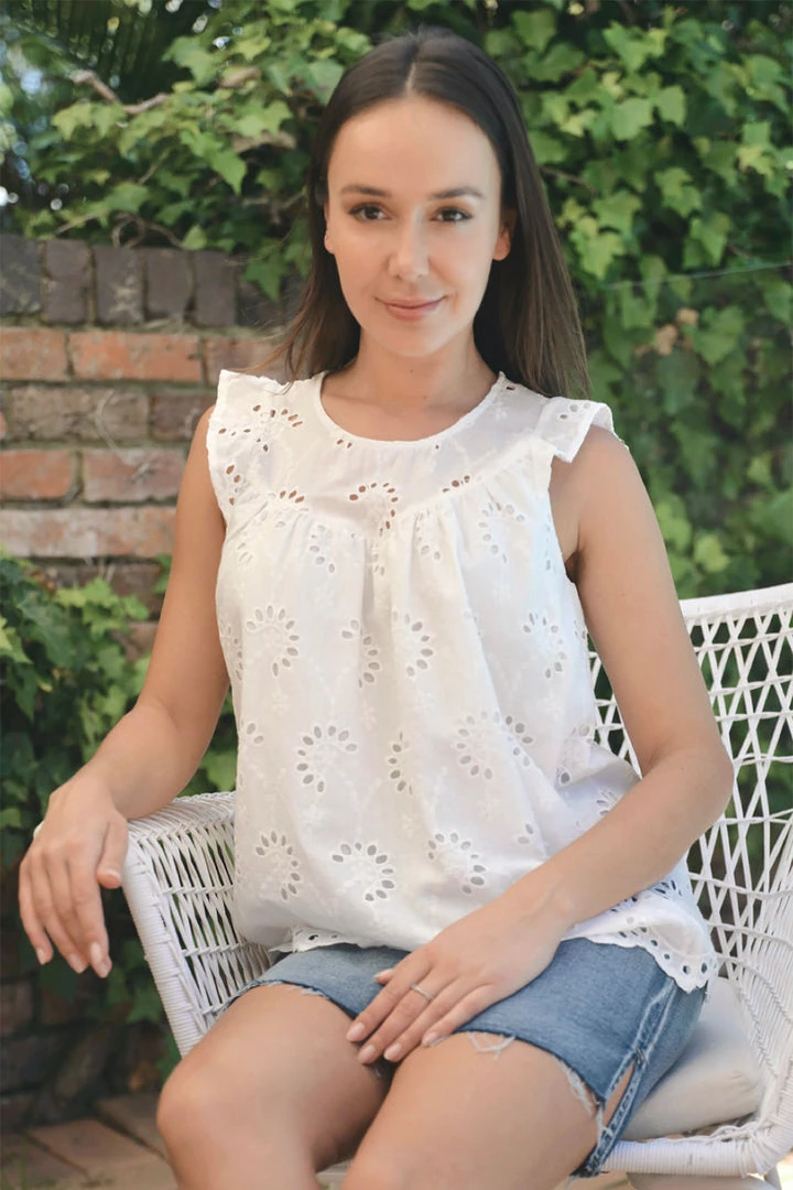 - You can’t go wrong with classic white and Broderie Anglaise for a wardrobe essential. This must have top with its delicate frill detail is perfect for hot summer days.Â