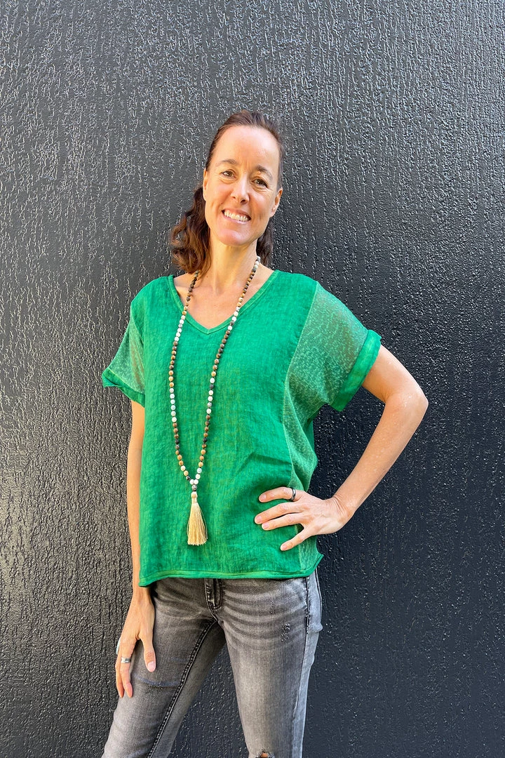 When it comes to finding the ultimateĀ relaxedĀ top that will pair with everything from jeans to linen skirts,Ā linenĀ is always a winner! TheĀ Linen ArtĀ Top in a Jade linen is the answer to your prayers! The vibrant Jade linenĀ fabric isĀ designed to make magic of the short, slouch sleeves,Ā soft V neckĀ and mid length relaxed fit to suit your Summer lifestyle.