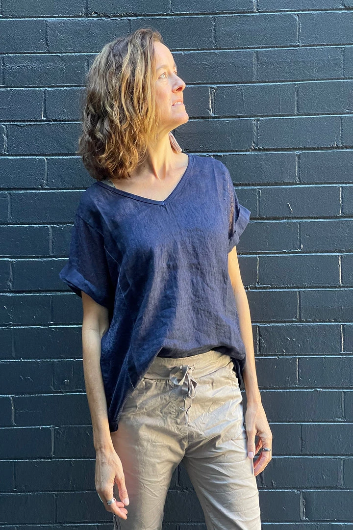 When it comes to finding the ultimate relaxed top that will pair with everything from jeans to linen skirts, linen is always a winner! The Linen Art Top in a Marine Blue linen is the answer to your prayers! The vibrant Marine Blue linen fabric is designed to make magic of the short, slouch sleeves, soft V neck and mid length relaxed fit to suit your Summer lifestyle.