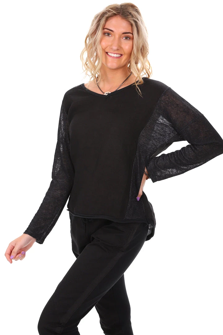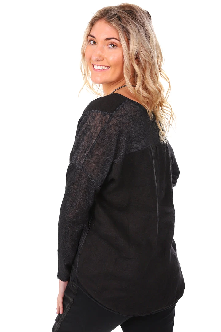 The Marie Linen Long Sleeve Tee in Black will blow your mind and your wardrobe, but not your bank account! Linen is a light weight & breathable fabric designed to pair with jeans and other linen pieces. The relaxed style silhouette makes this an easy to wear design with a beautiful natural black charm.