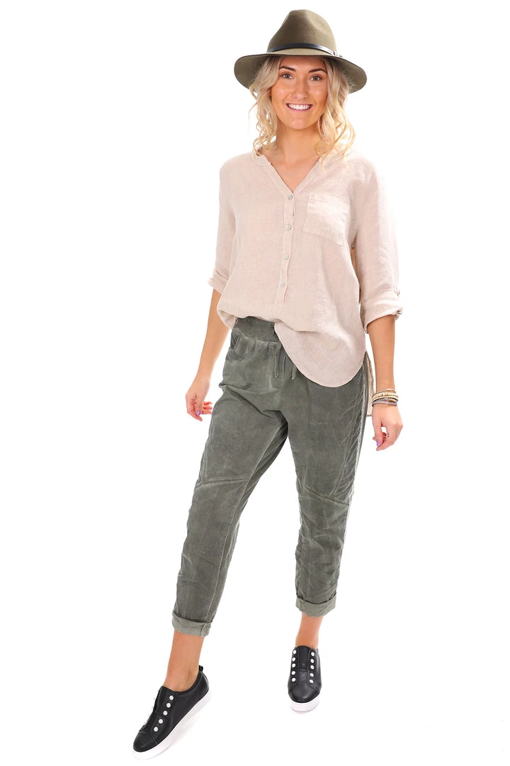 Looking for a soft, versatile linenĀ shirtĀ that will pair with everythingĀ this season? TheĀ RitaĀ LinenĀ ShirtĀ inĀ Sabia by The Italian Cartel is the answer to your prayers! The light weight charcoalĀ linen fabric is breathable, relaxed and shown off perfectly through theĀ roll upĀ sleeve.