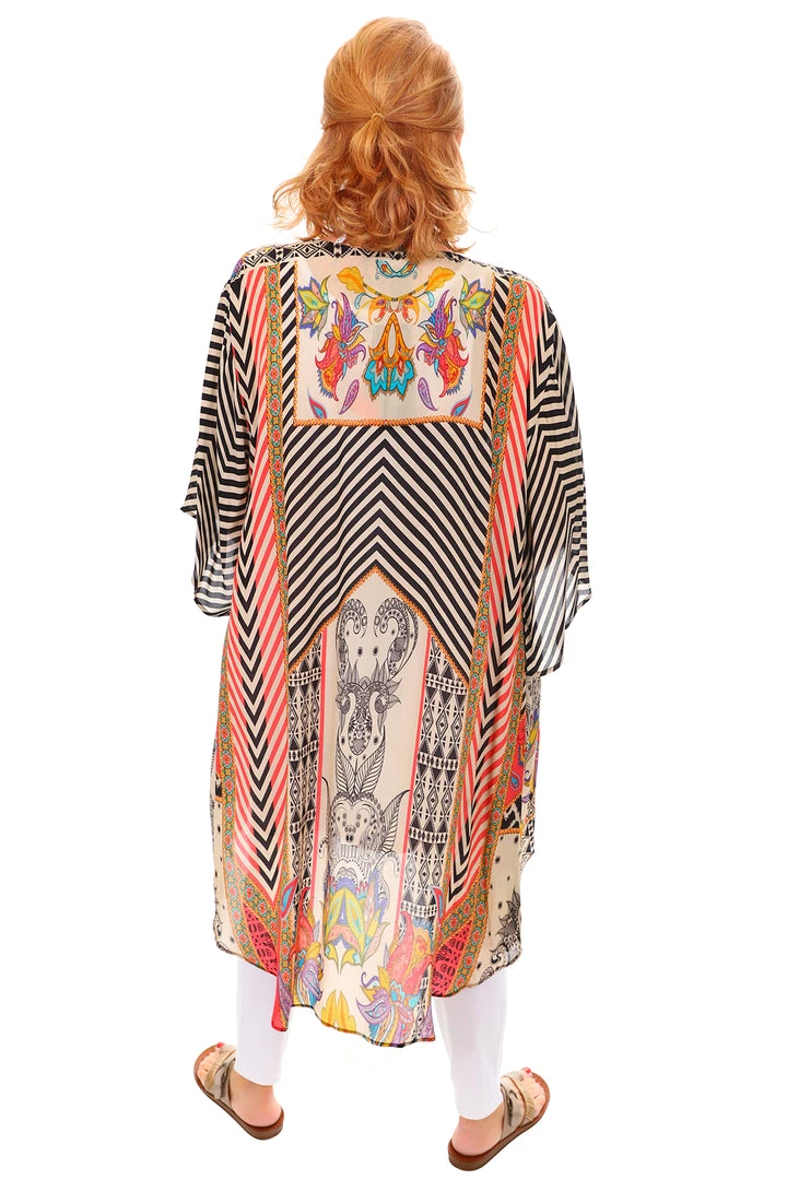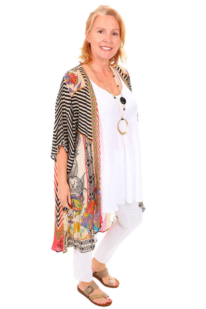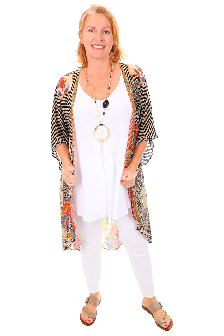 Looking for a lift for your wardrobe? If you are looking for a simple throw over top this kimono is the perfect solution to your dilemma. Kimono’s are the new must have accessory for every woman’s wardrobe. This Boho Kimono by