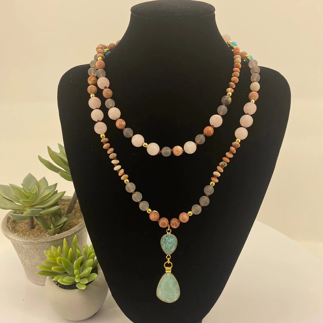Stellar Rose Blue Quartz Mala Beads | SR17