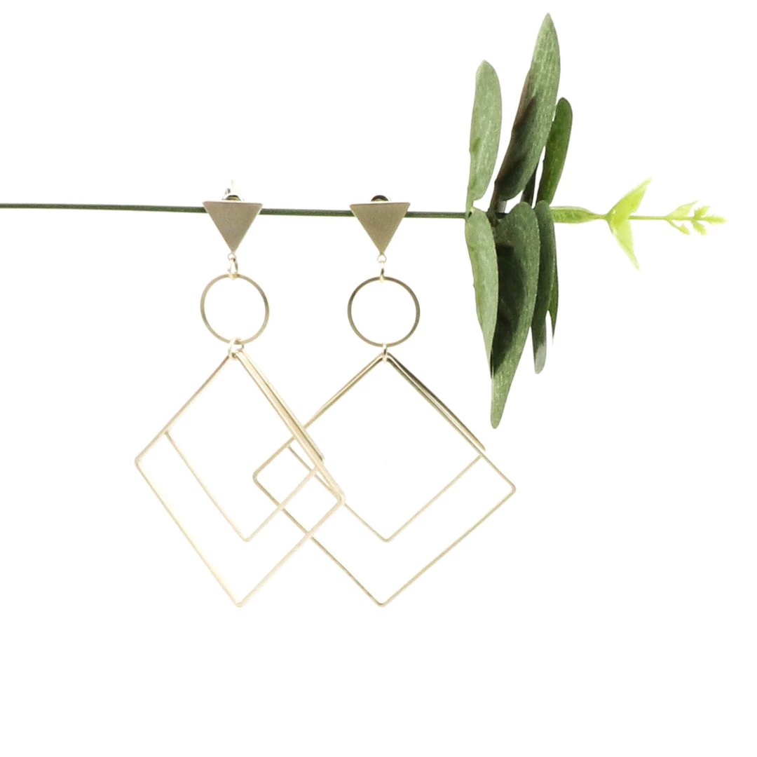 Designed and made beautifully by Stellar Rose these stand geometric gold drop earrings are utterly unique and timeless! A beautiful addition to your jewellery collection for all occasions!
