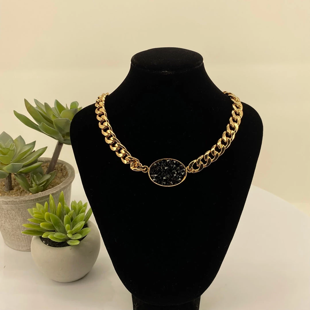 - Thick Gold Chain, Black Rhinestone Centre PieceÂ