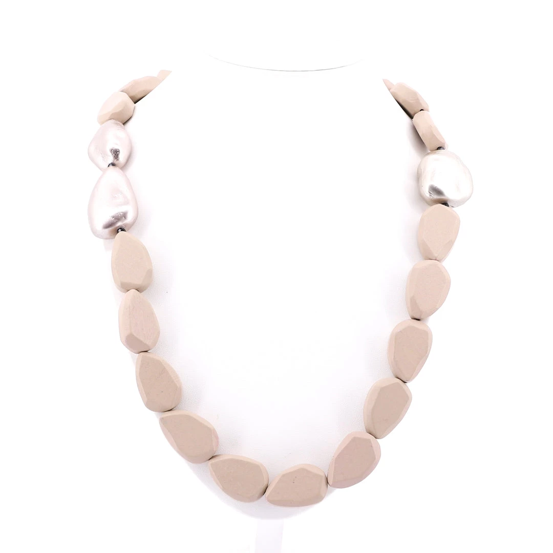 Keep it simple and say it all with this Stone Necklace by Stella Rose. Made from neural coloured beads that look chiselled and raw this necklace is understated but leaves an impact! Highlighted with rose gold feature beads this Stella Rose necklace will pair with everything from linen to leather!