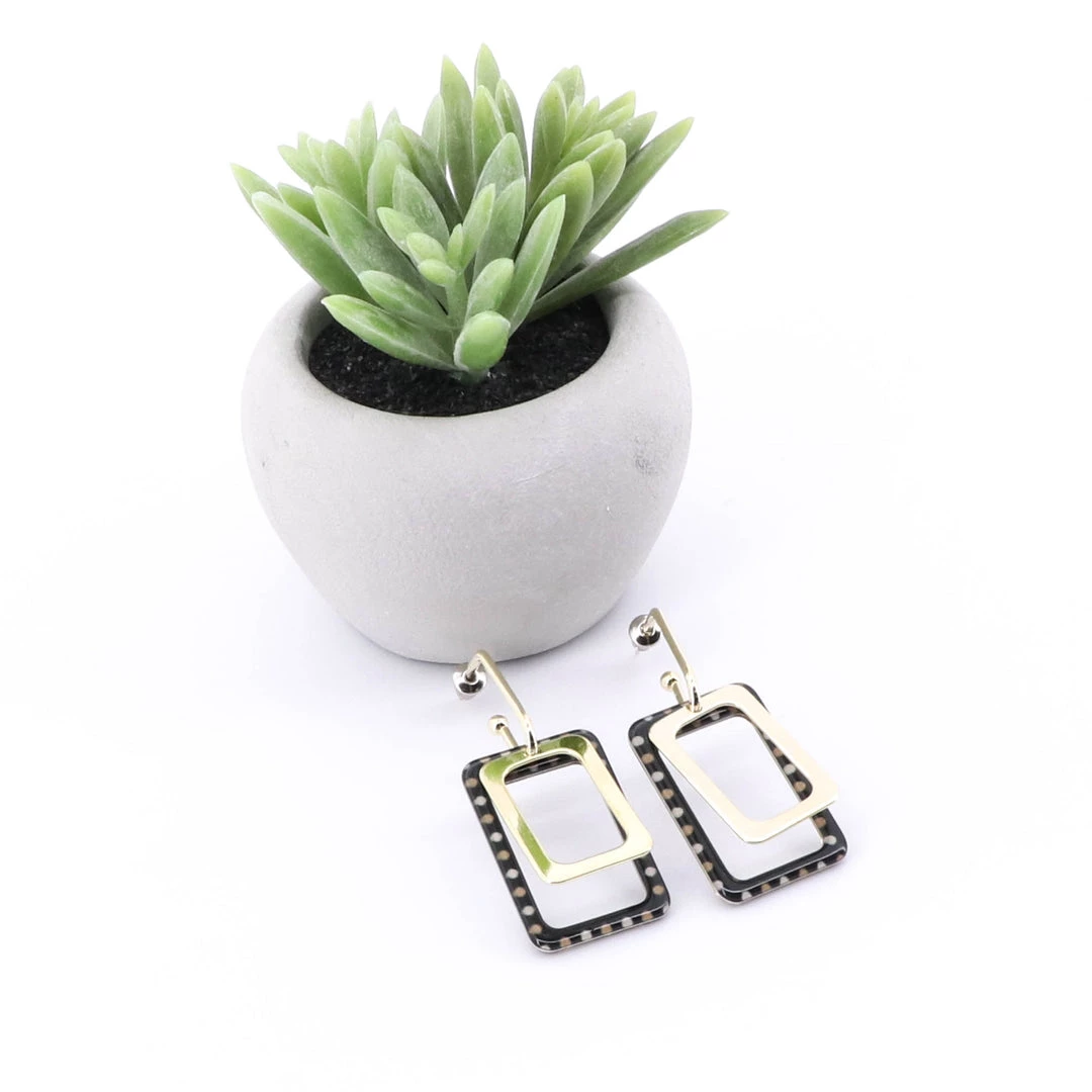 Designed and made beautifully by Stellar Rose these retro inspired drop earrings in black and gold utterly unique and timeless! A beautiful addition to your jewellery collection for all occasions!