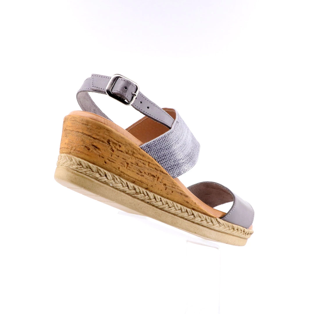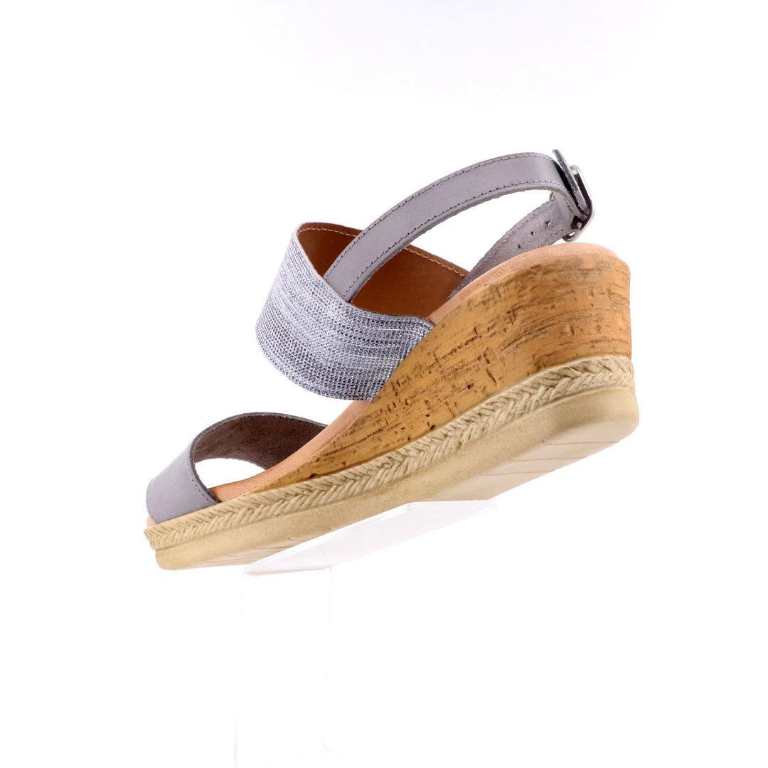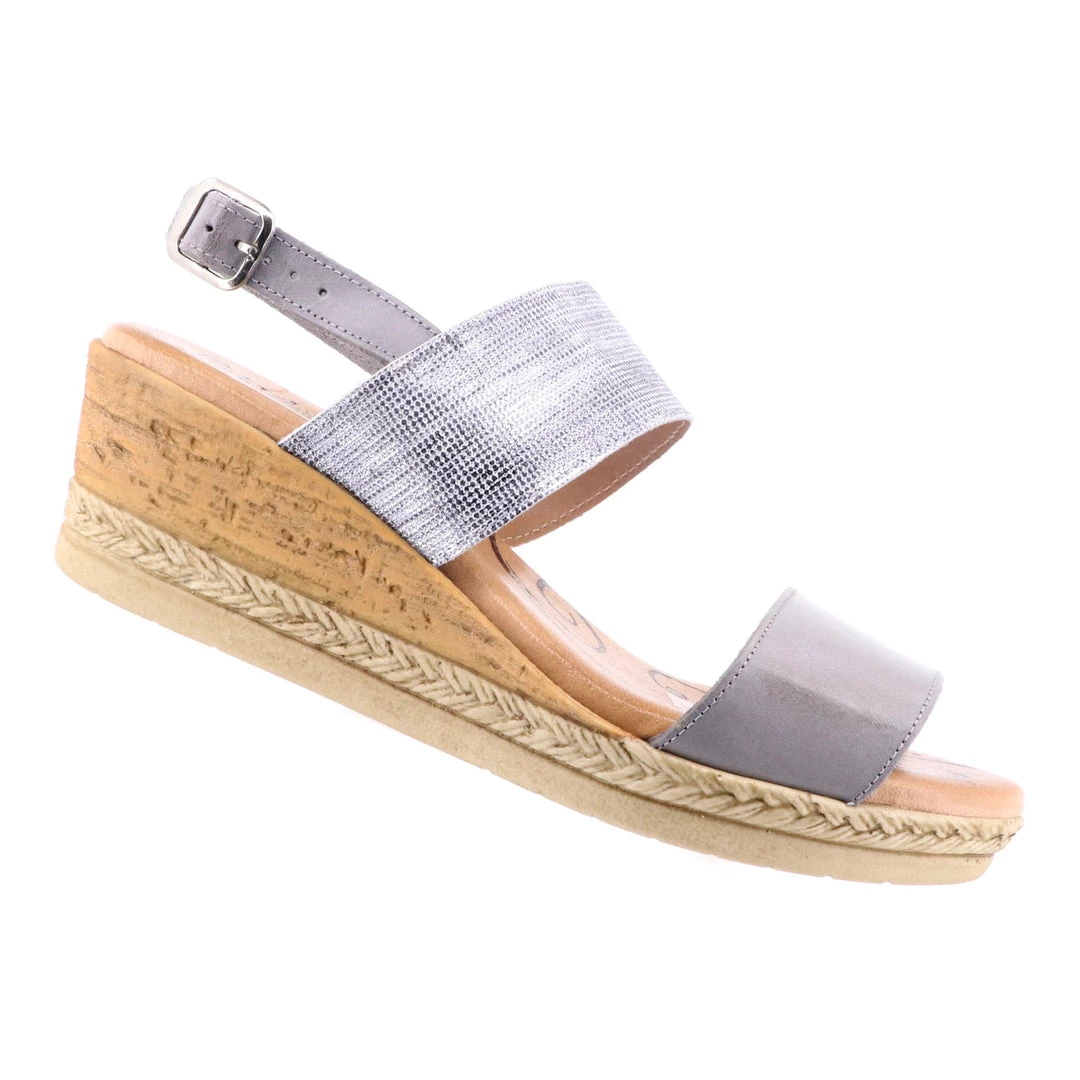 A must have addition to your summer wardrobe with this decorative wedge sandal! The soft metallic shimmer enriches the natural wedge setting off any outfit perfectly! Adjustable ankle strap, moulded footbed for added comfort. Pair with pants or dresses for a flattering and unique look for any occasion.