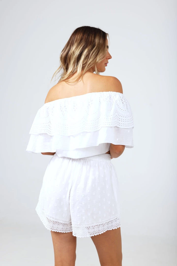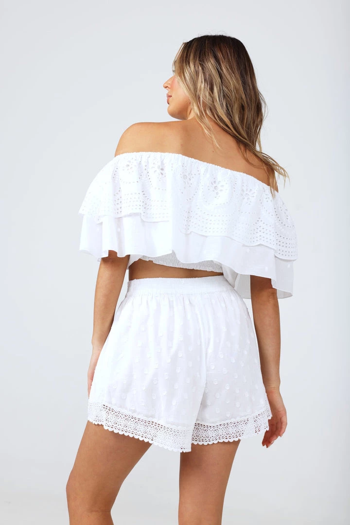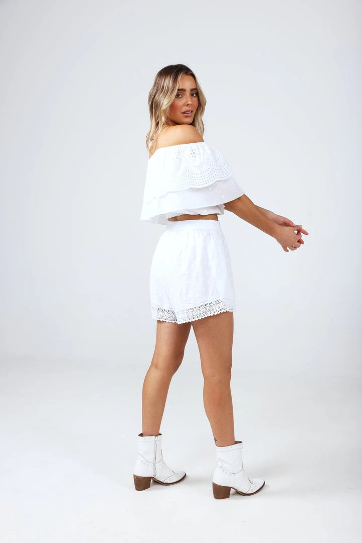 Look and feel good in these 100% cotton white shorts from talisman, easy to wear with a cotton lace trim, side pockets and a pull on elastic waist.