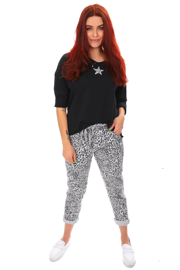 This year is all about the effortless look! Add that style to your wardrobe with the Natalia Pants in Grey by the Italian Cartel! These elastic waist, drawstring pants in leopard print cotton are everything you’ve been craving in the name of comfort and style. With pocket detail and a pleasant stretch these gorgeous grey pants are effortless and versatile.